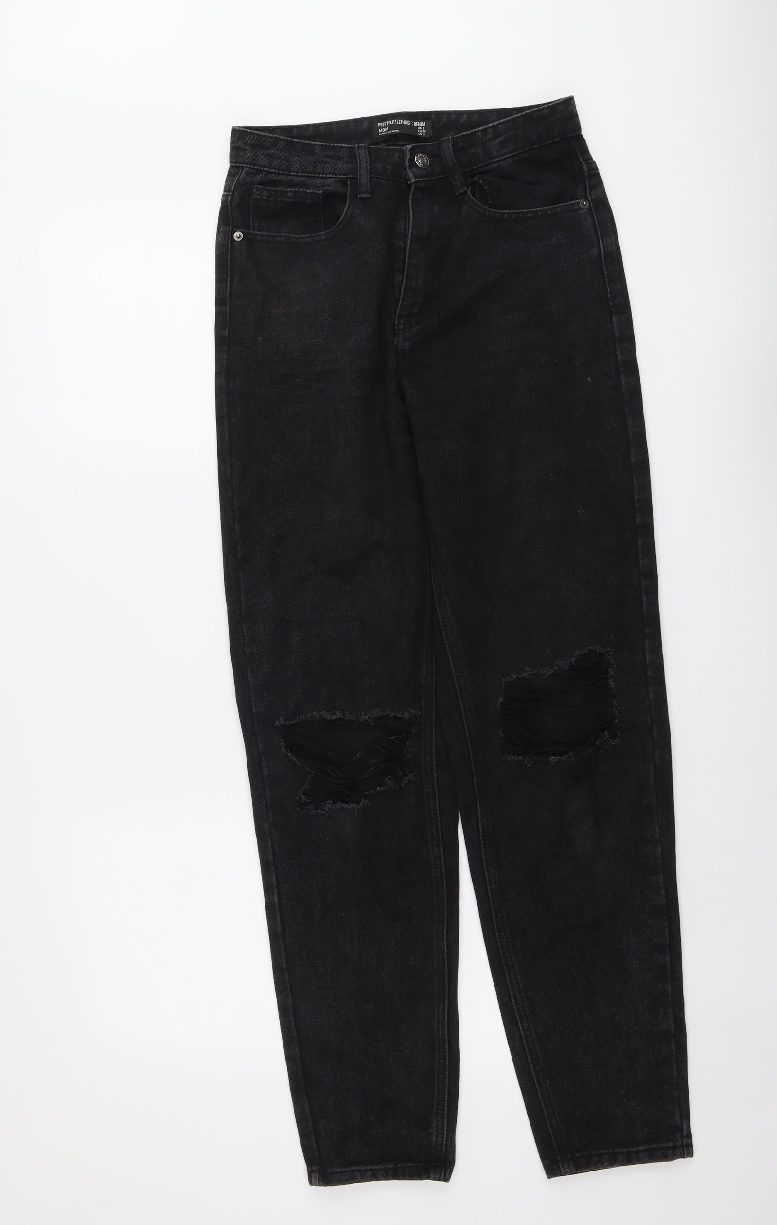 PRETTYLITTLETHING Womens Black Cotton Straight Jeans Size 6 L30 in Regular Button