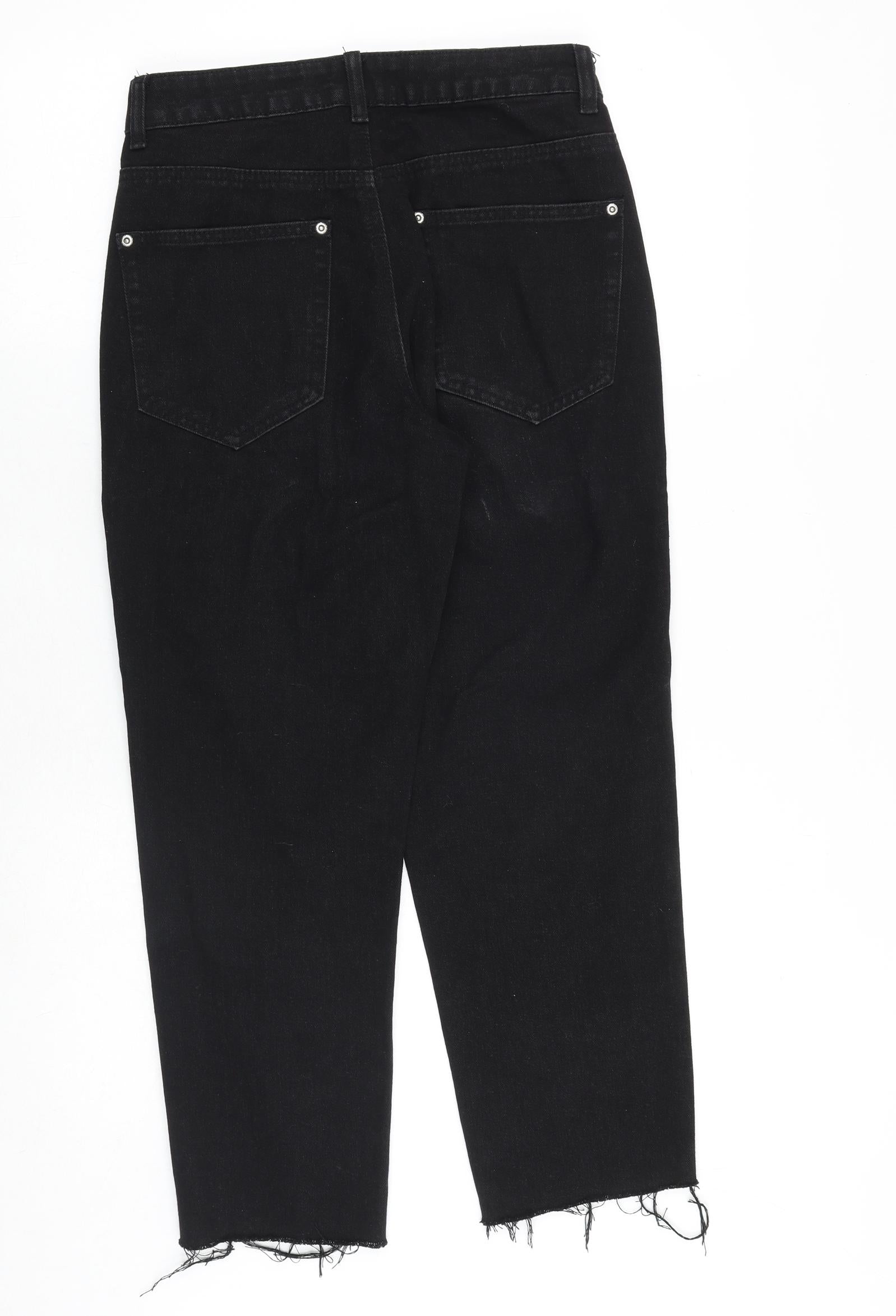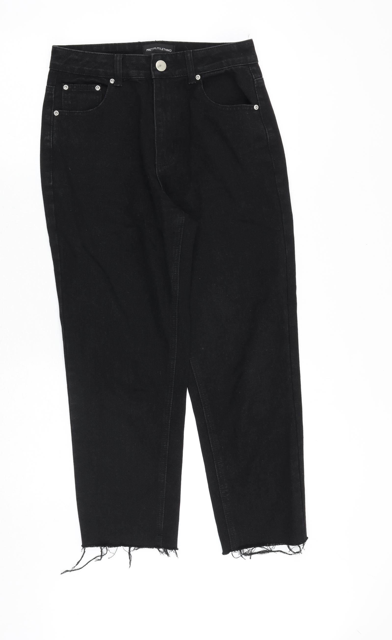 PRETTYLITTLETHING Womens Black Cotton Straight Jeans Size 8 Relaxed Zip