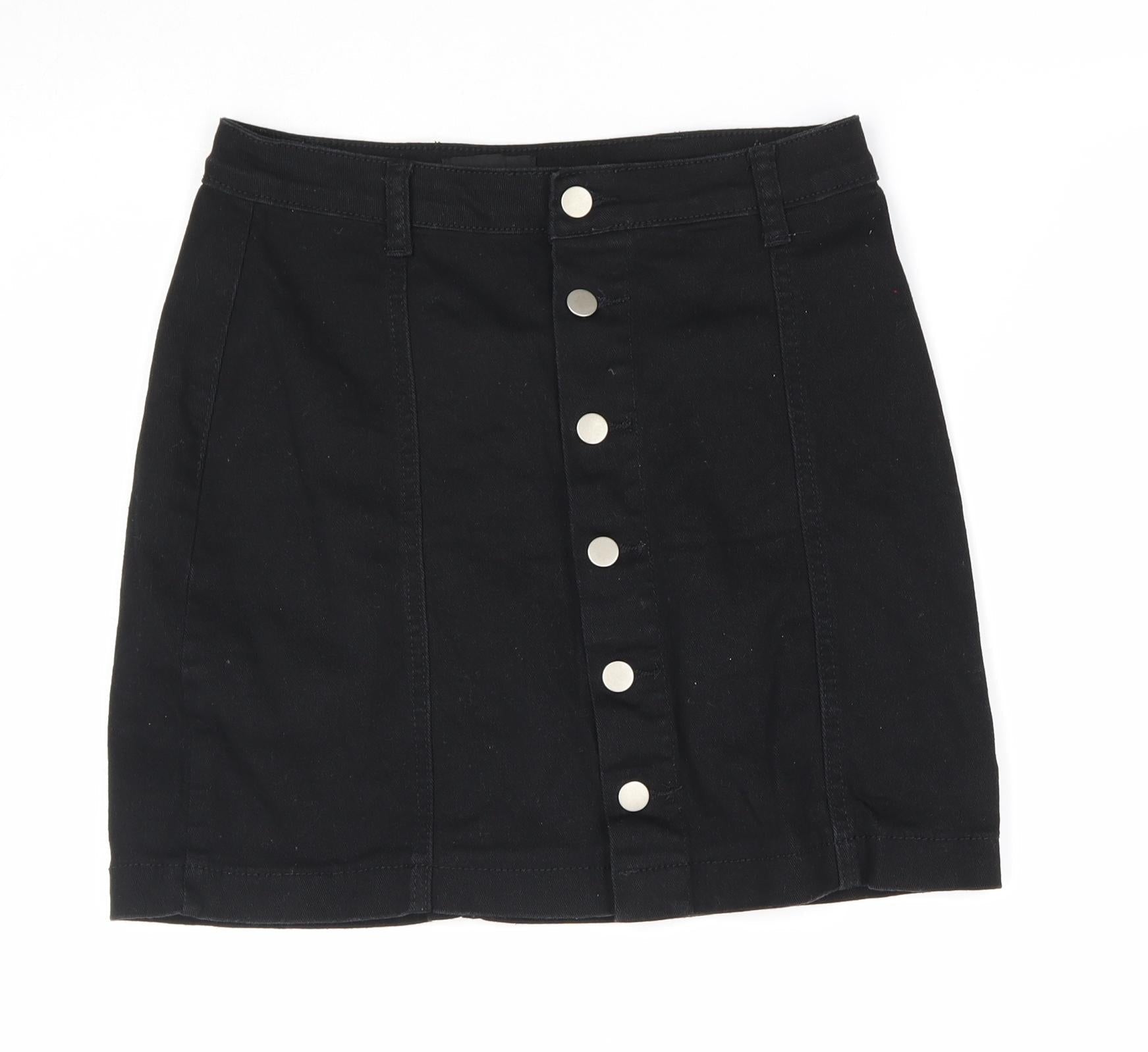 PRETTYLITTLETHING Womens Black Cotton Straight & Pencil Skirt Size 10 Button