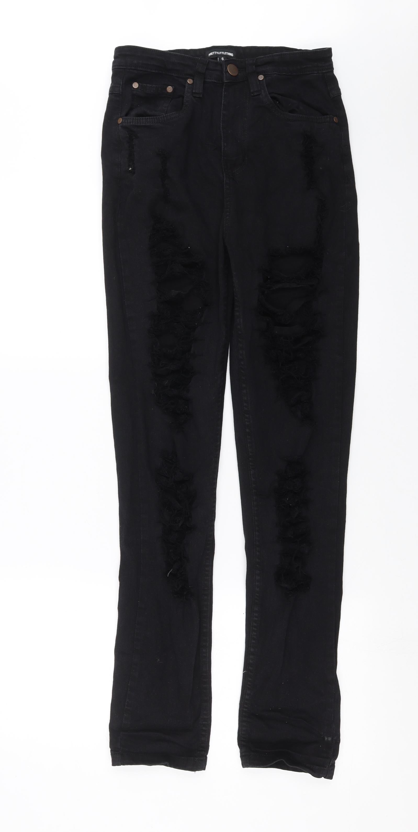 PRETTYLITTLETHING Womens Black Denim Straight Jeans Size 6 L31 in