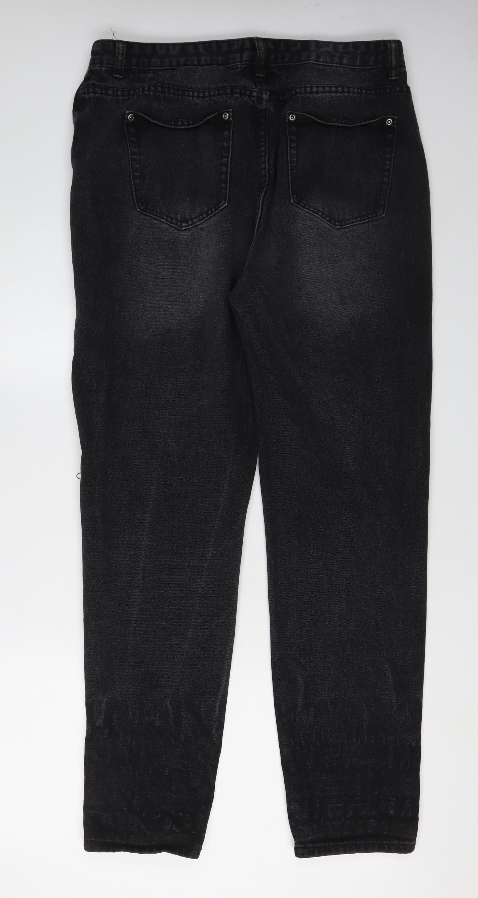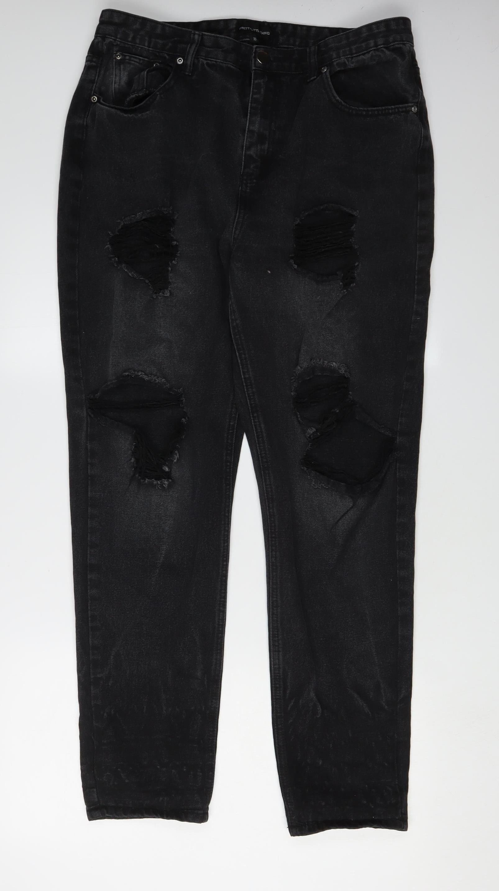 PrettyLittleThing Women's Black Distressed Straight Jeans Size 16