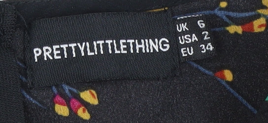 PrettyLittleThing Women's Black Floral Mini Dress - Size 6