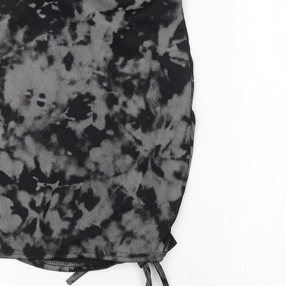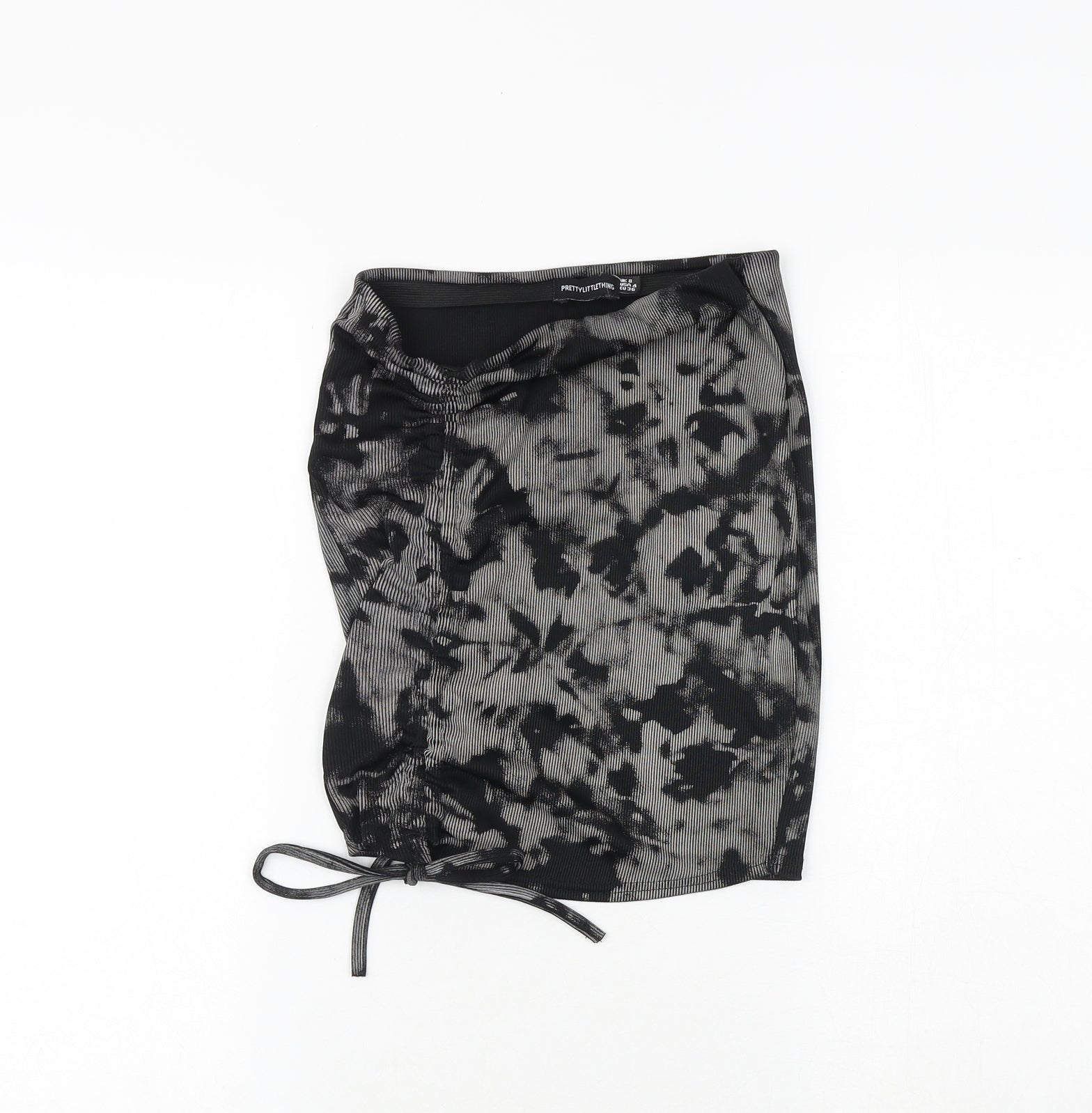 PRETTYLITTLETHING Womens Black Geometric Polyester Bandage Skirt Size 8 Tie