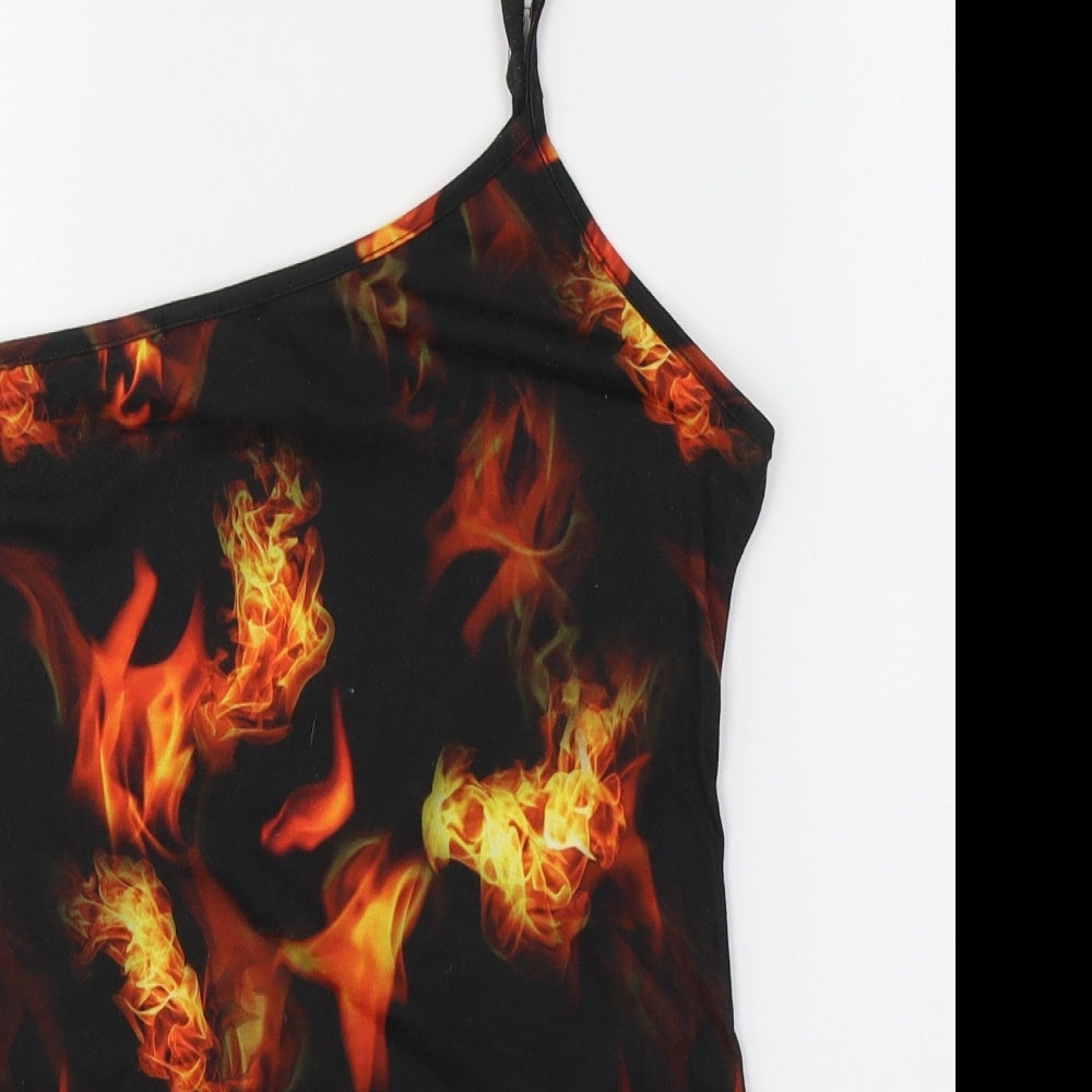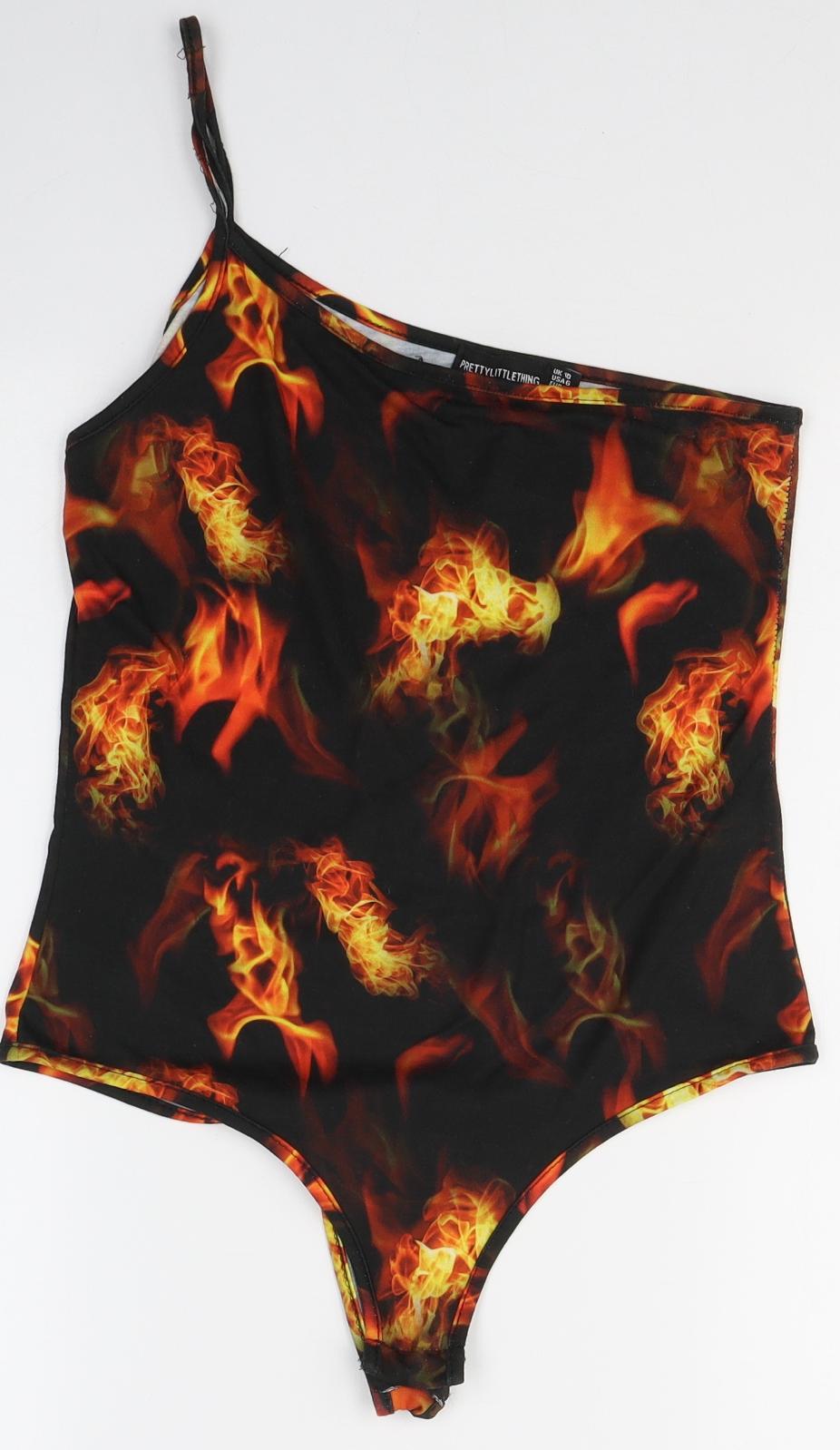 PRETTYLITTLETHING Womens Black Geometric Polyester Bodysuit One-Piece Size 10 Button
