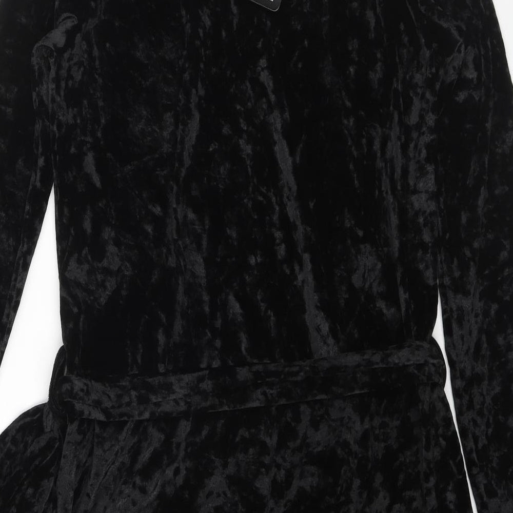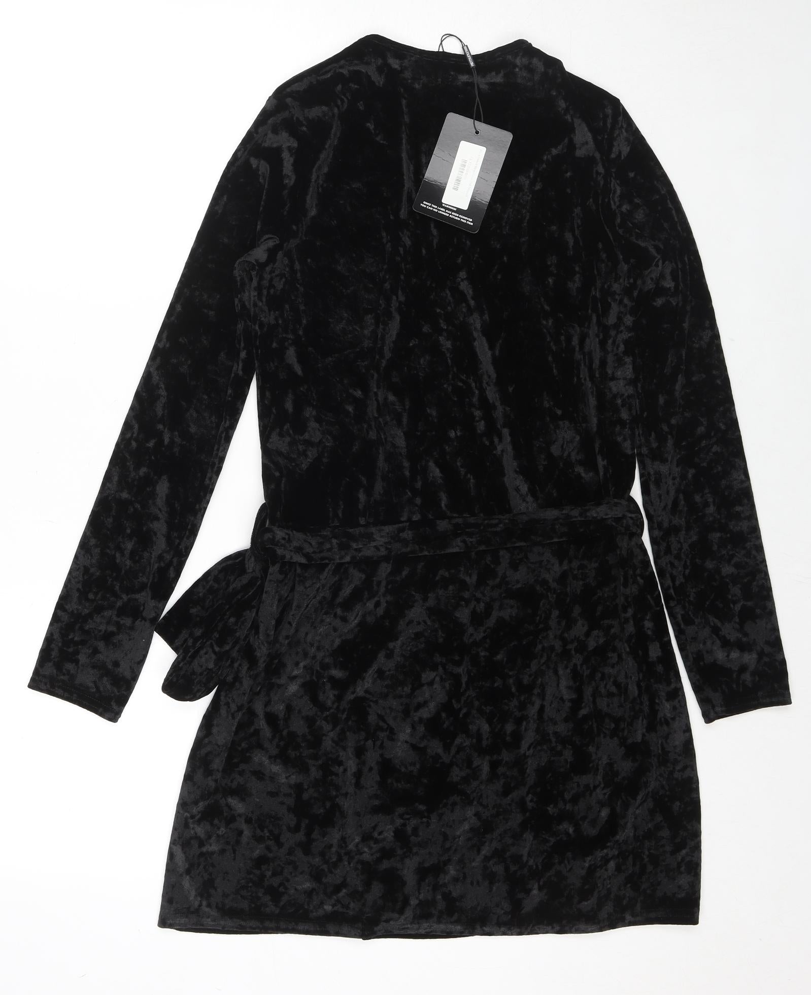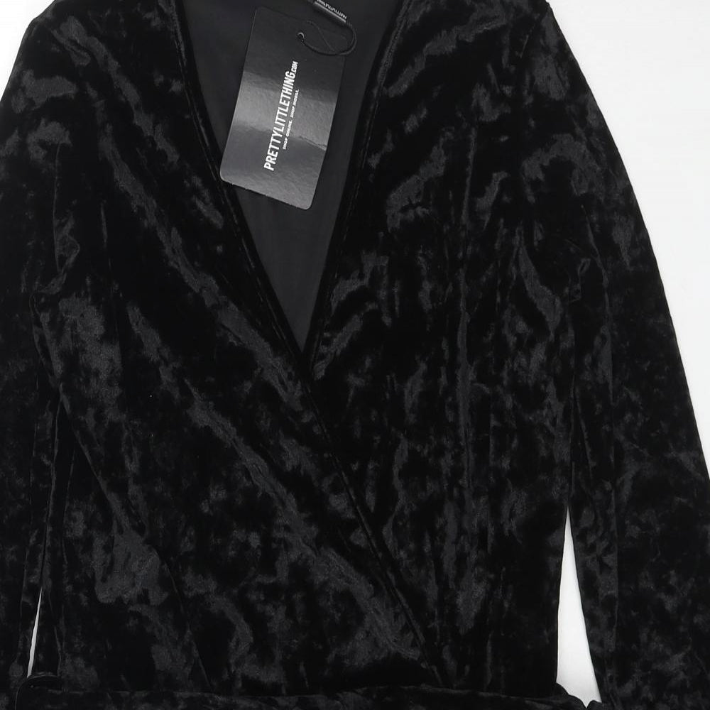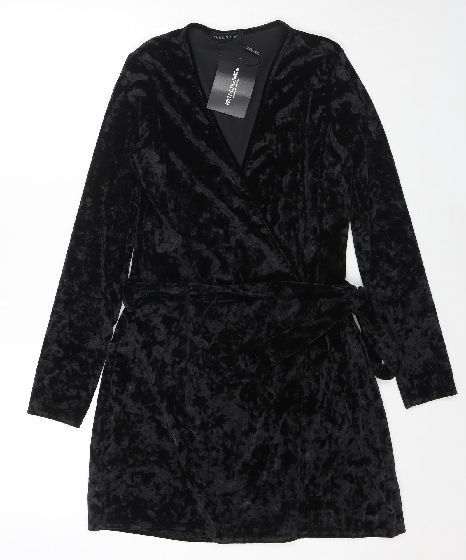 PRETTYLITTLETHING Womens Black Geometric Polyester Wrap Dress Size 6 V-Neck Button