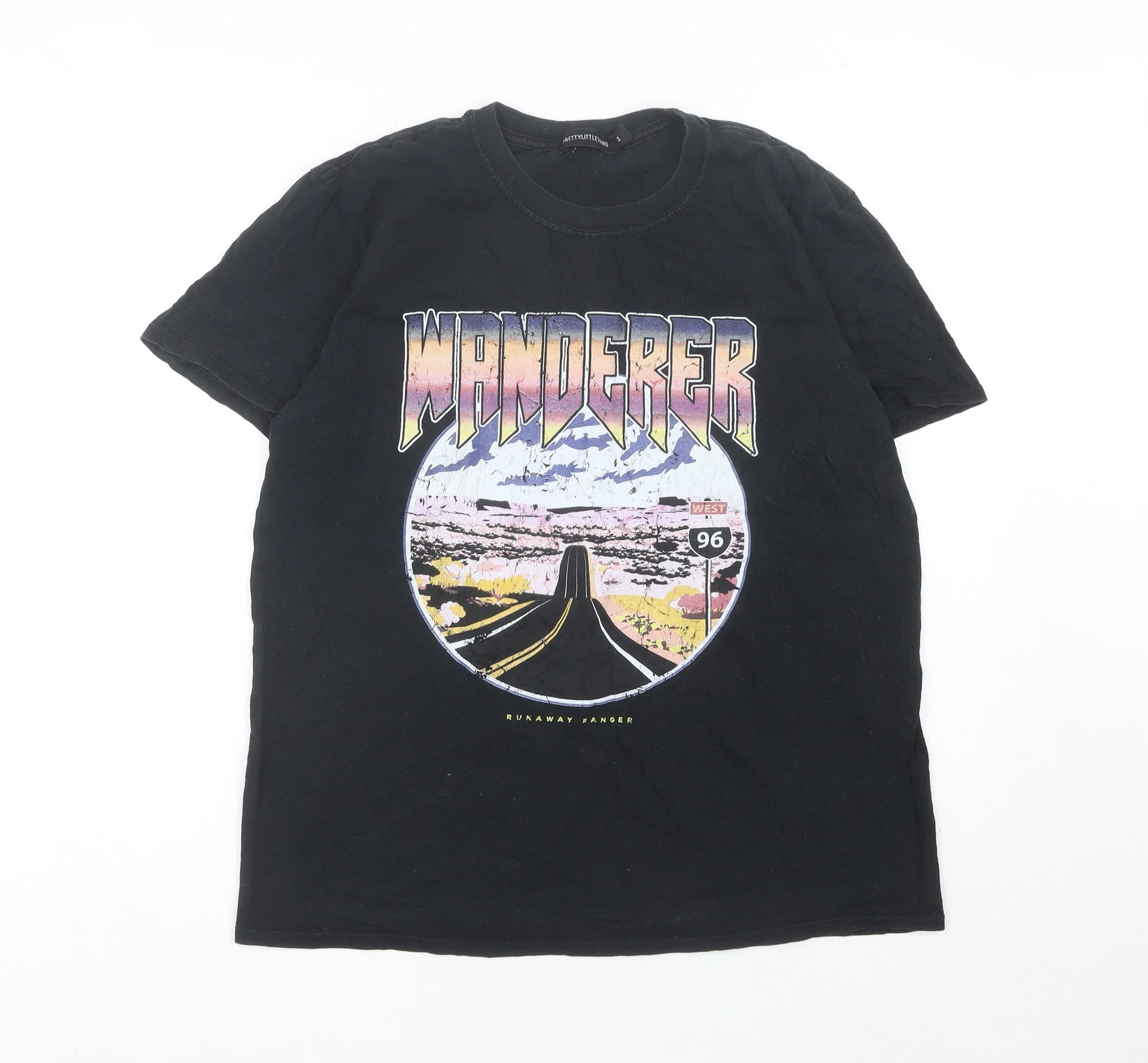 PrettyLittleThing Womens Black Graphic Wanderer T-Shirt Size S