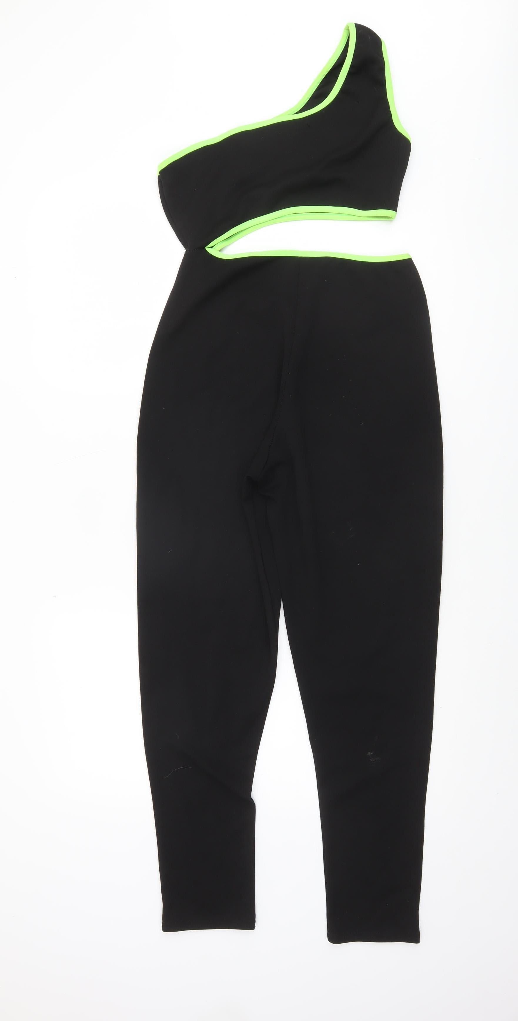 PrettyLittleThing Womens Black Neon Trim One Shoulder Jumpsuit UK 10