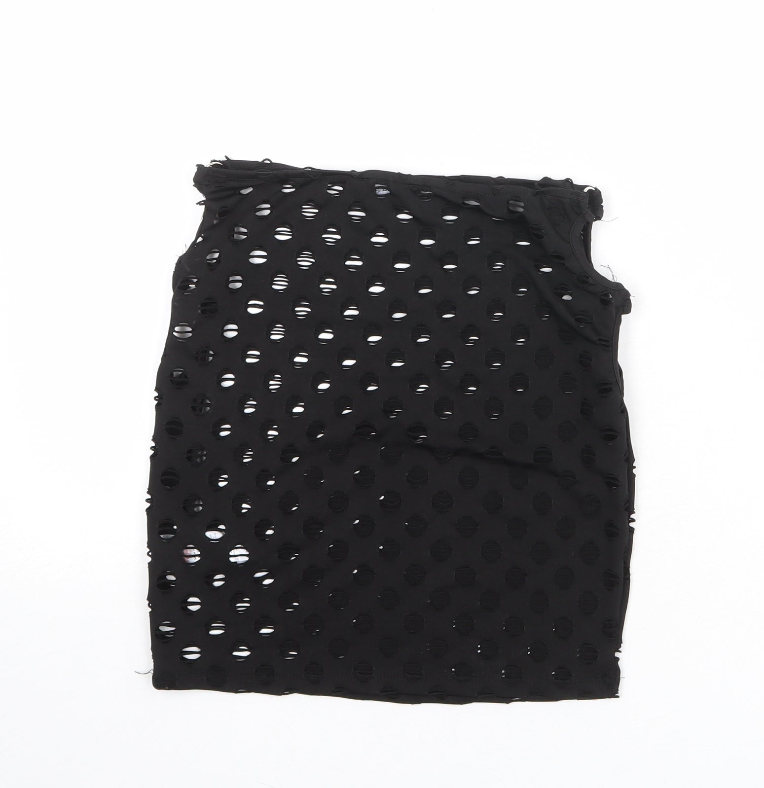 PRETTYLITTLETHING Womens Black Polka Dot Polyester Bandage Skirt Size 8 - Cut out side detail