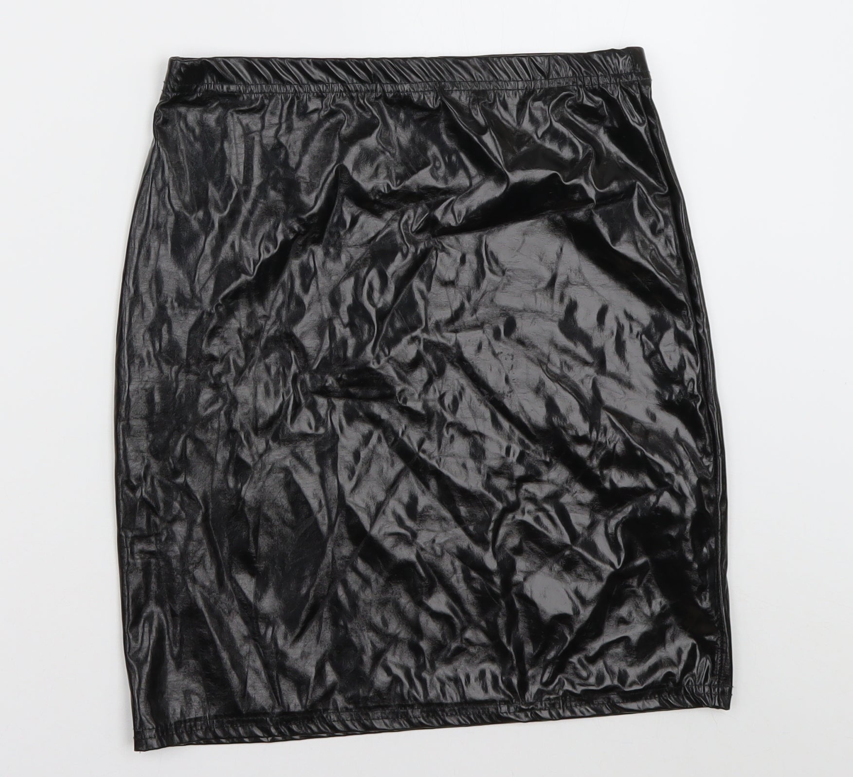 PRETTYLITTLETHING Womens Black Polyester A-Line Skirt Size 10