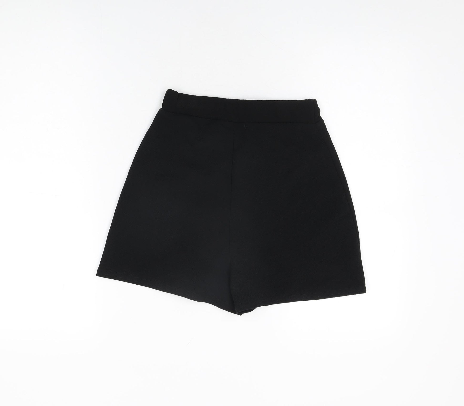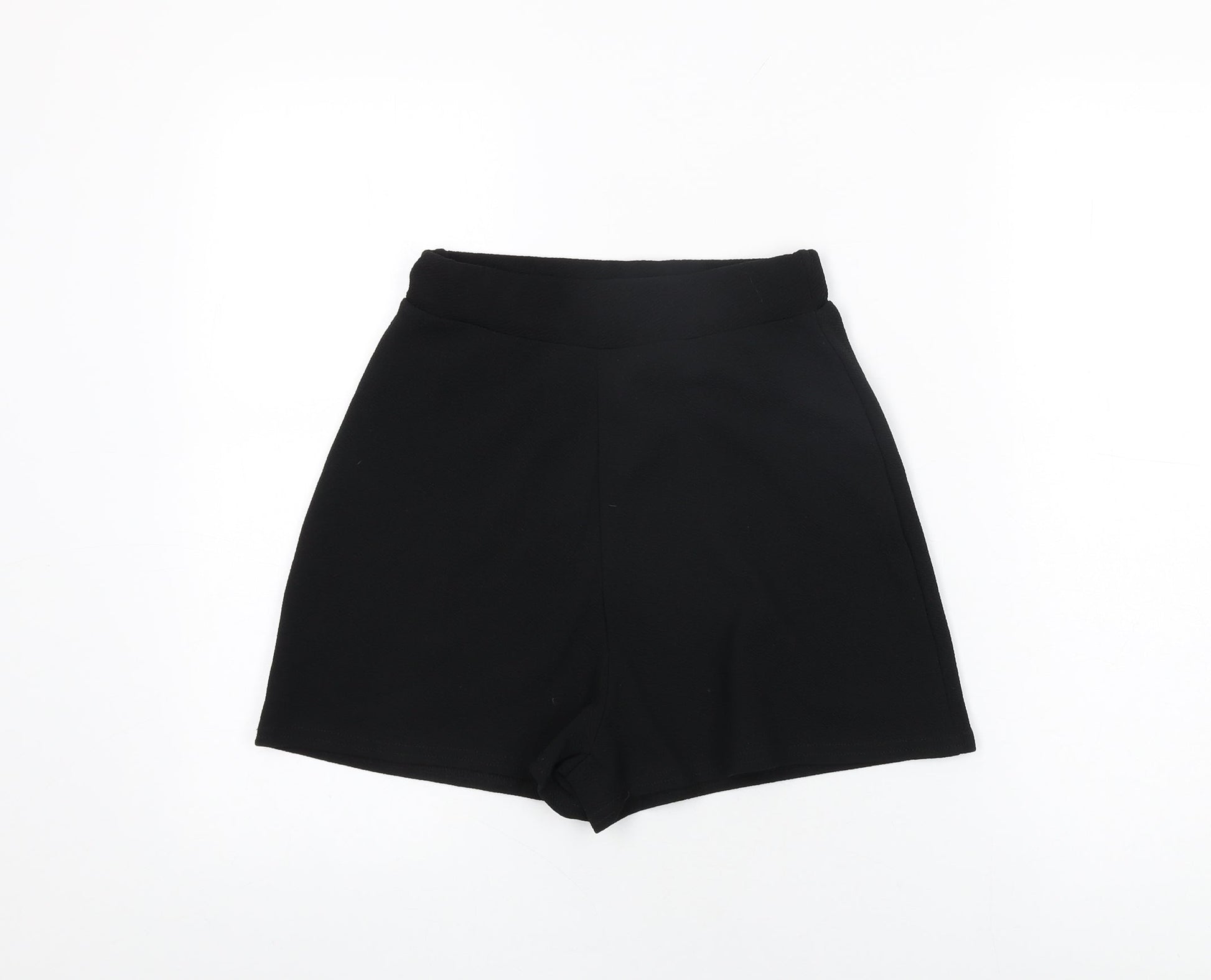 PRETTYLITTLETHING Womens Black Polyester Basic Shorts Size 10 Regular Pull On