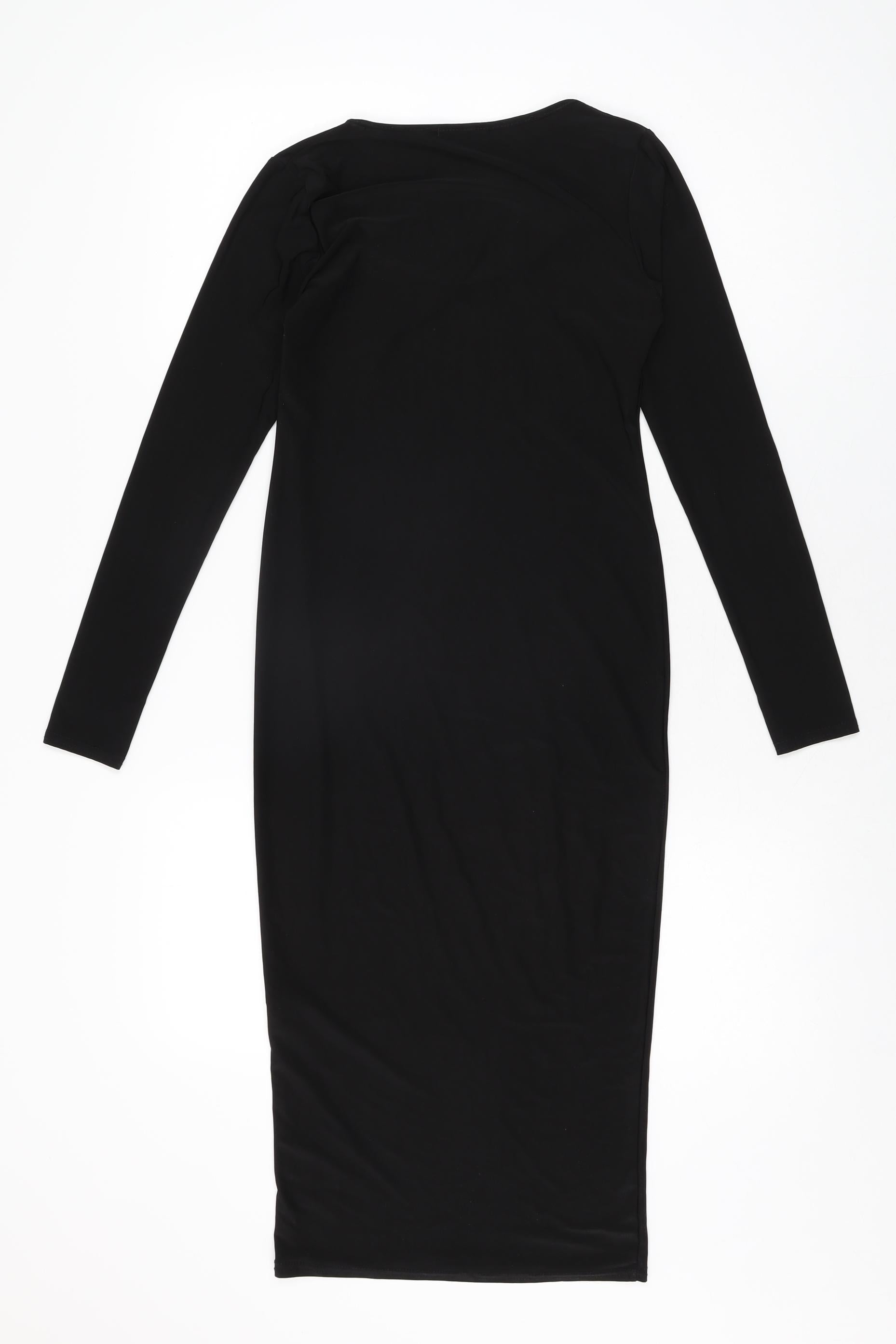 PRETTYLITTLETHING Womens Black Polyester Bodycon Size 10 Scoop Neck Pullover