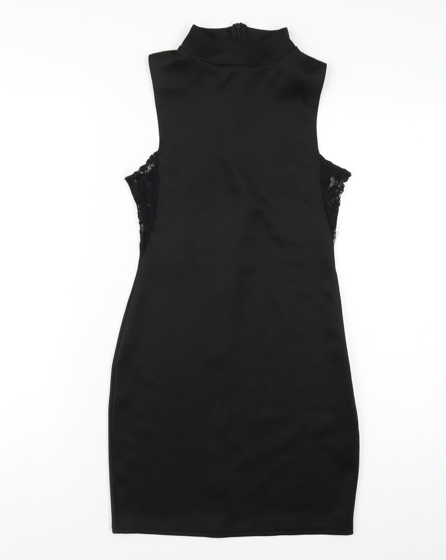 PRETTYLITTLETHING Womens Black Polyester Bodycon Size 6 Mock Neck Zip