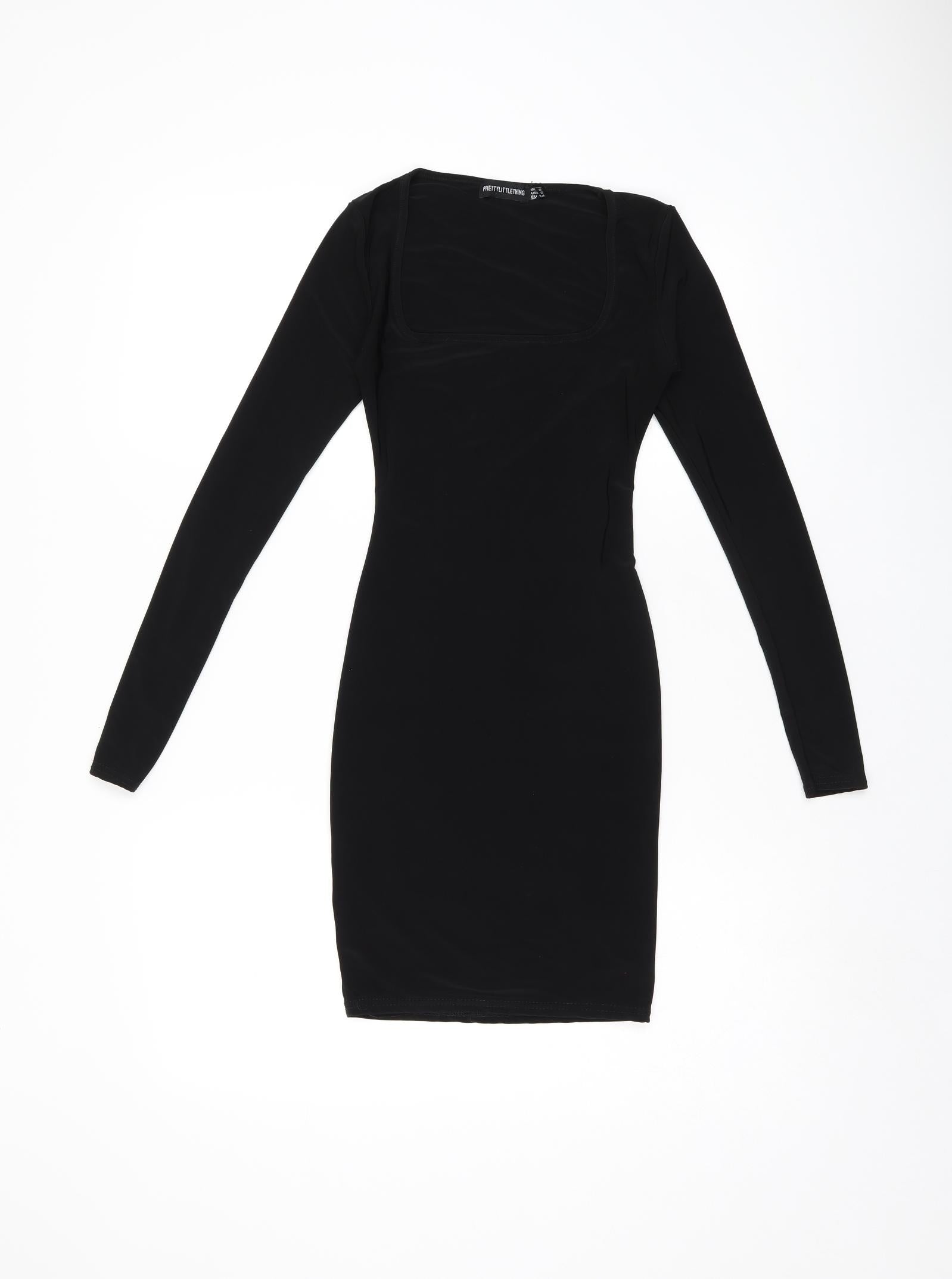 PRETTYLITTLETHING Womens Black Polyester Bodycon Size 6 Square Neck Pullover