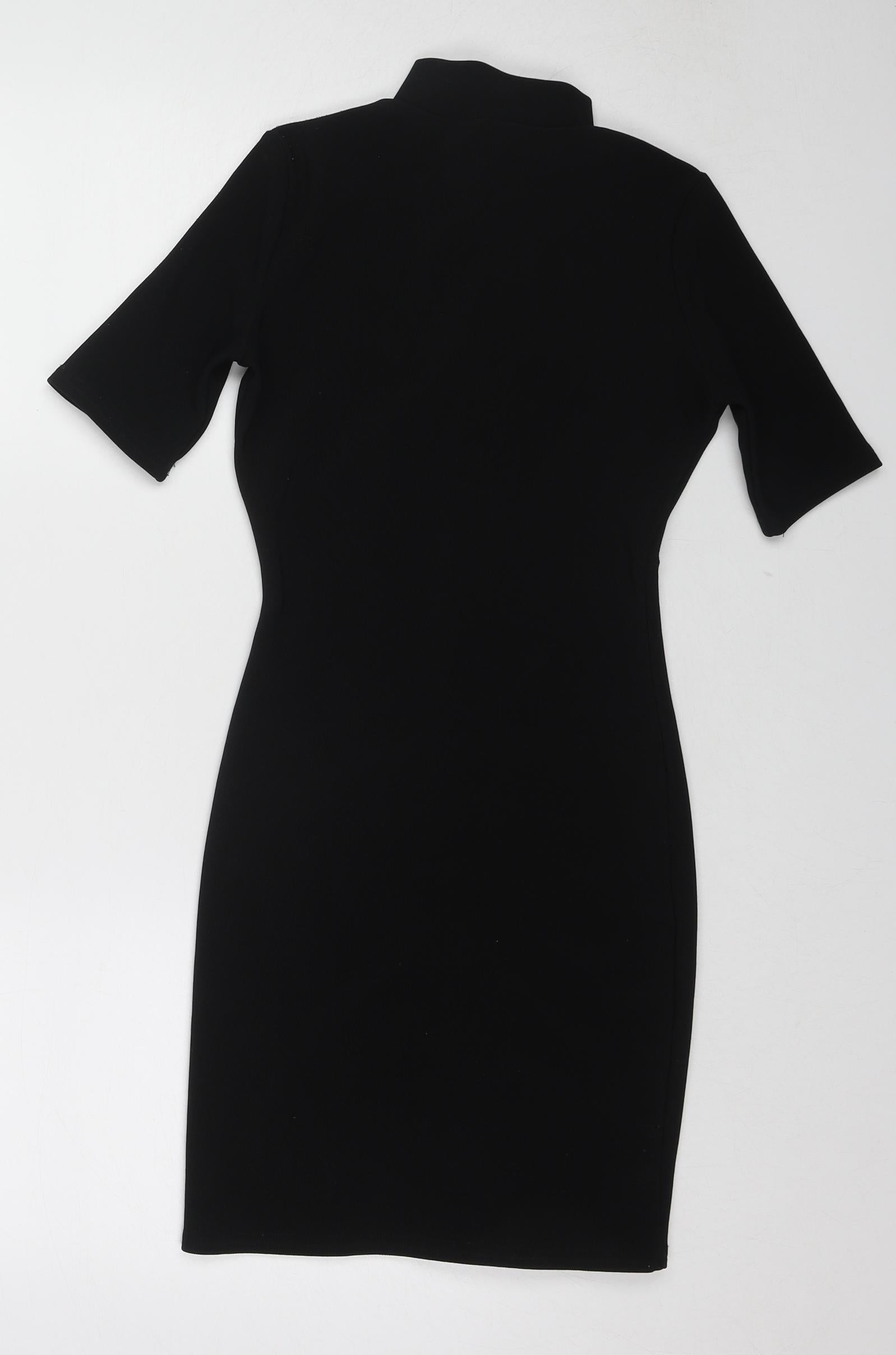 PRETTYLITTLETHING Womens Black Polyester Bodycon Size 6 V-Neck Zip
