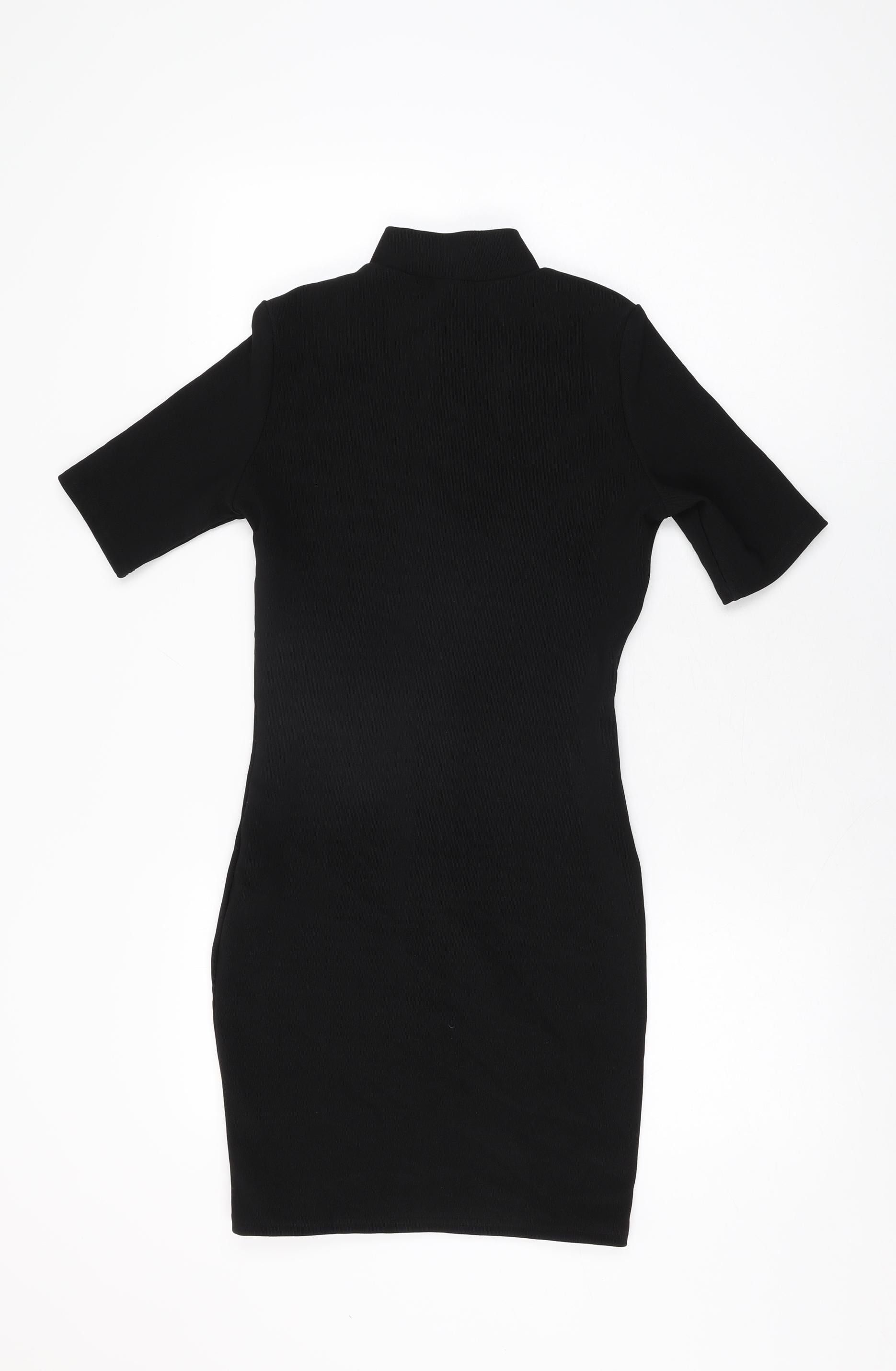 PRETTYLITTLETHING Womens Black Polyester Bodycon Size 8 High Neck Zip