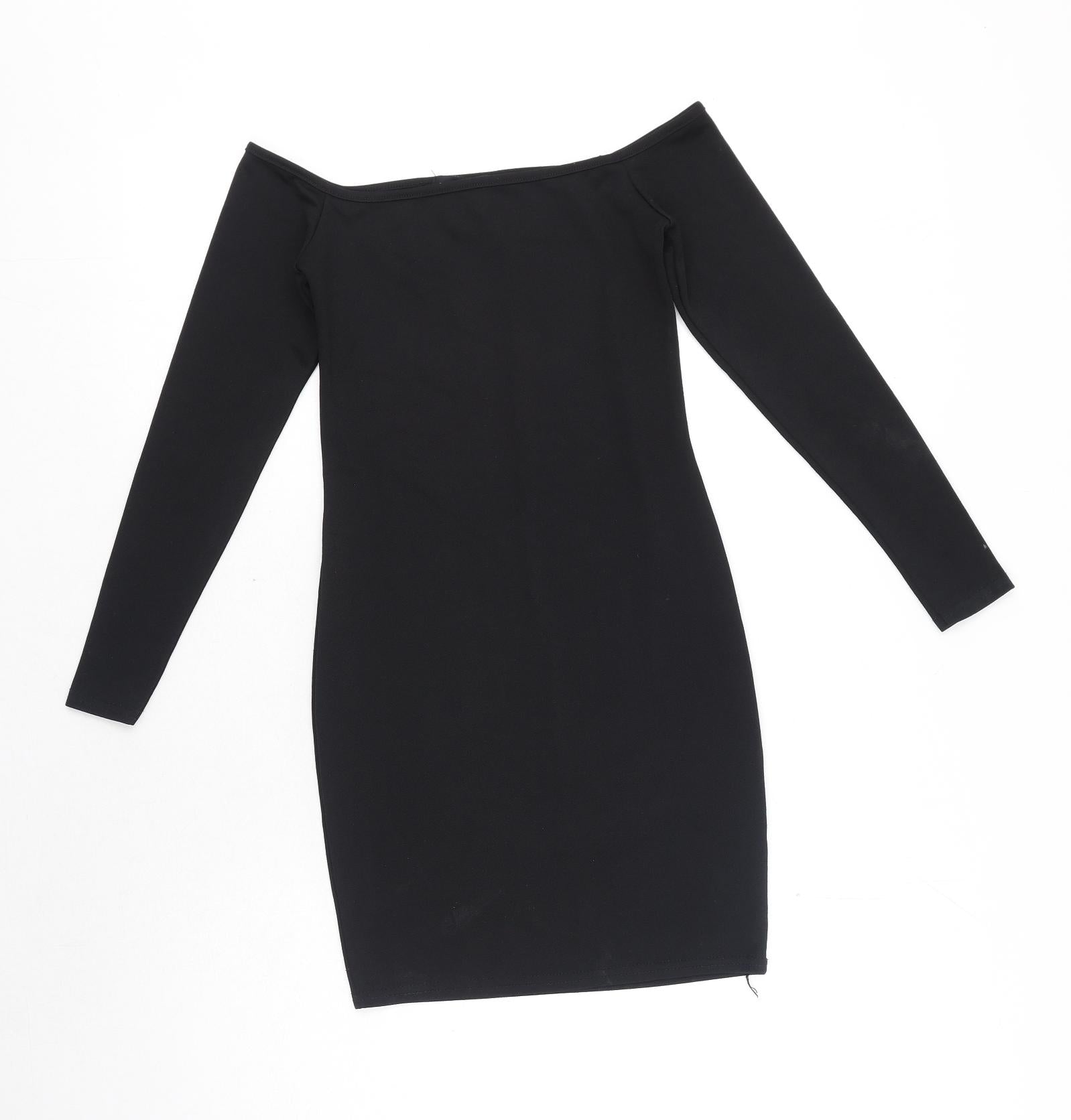 PRETTYLITTLETHING Womens Black Polyester Bodycon Size 8 Off the Shoulder Pullover