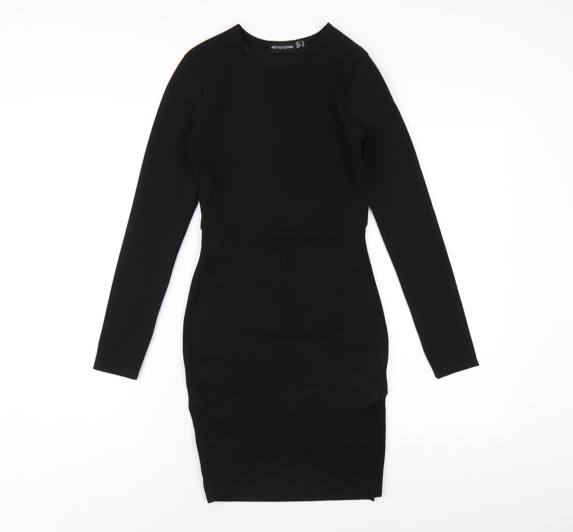 PRETTYLITTLETHING Womens Black Polyester Bodycon Size 8 Round Neck Pullover