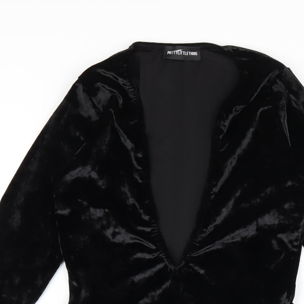 PRETTYLITTLETHING Womens Black Polyester Bodycon Size 8 V-Neck Pullover