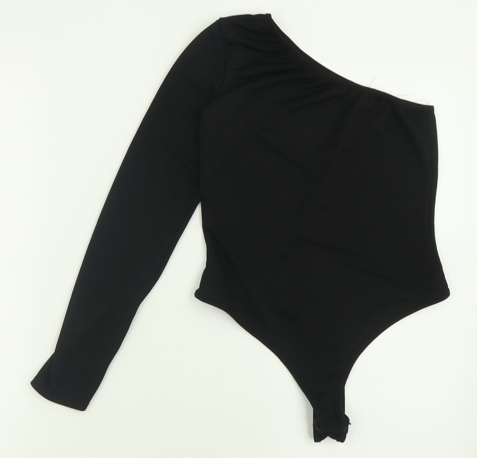 PRETTYLITTLETHING Womens Black Polyester Bodysuit One-Piece Size 10 Button
