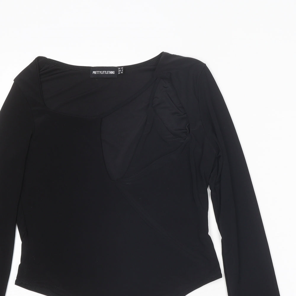 PRETTYLITTLETHING Womens Black Polyester Bodysuit One-Piece Size 10 Snap