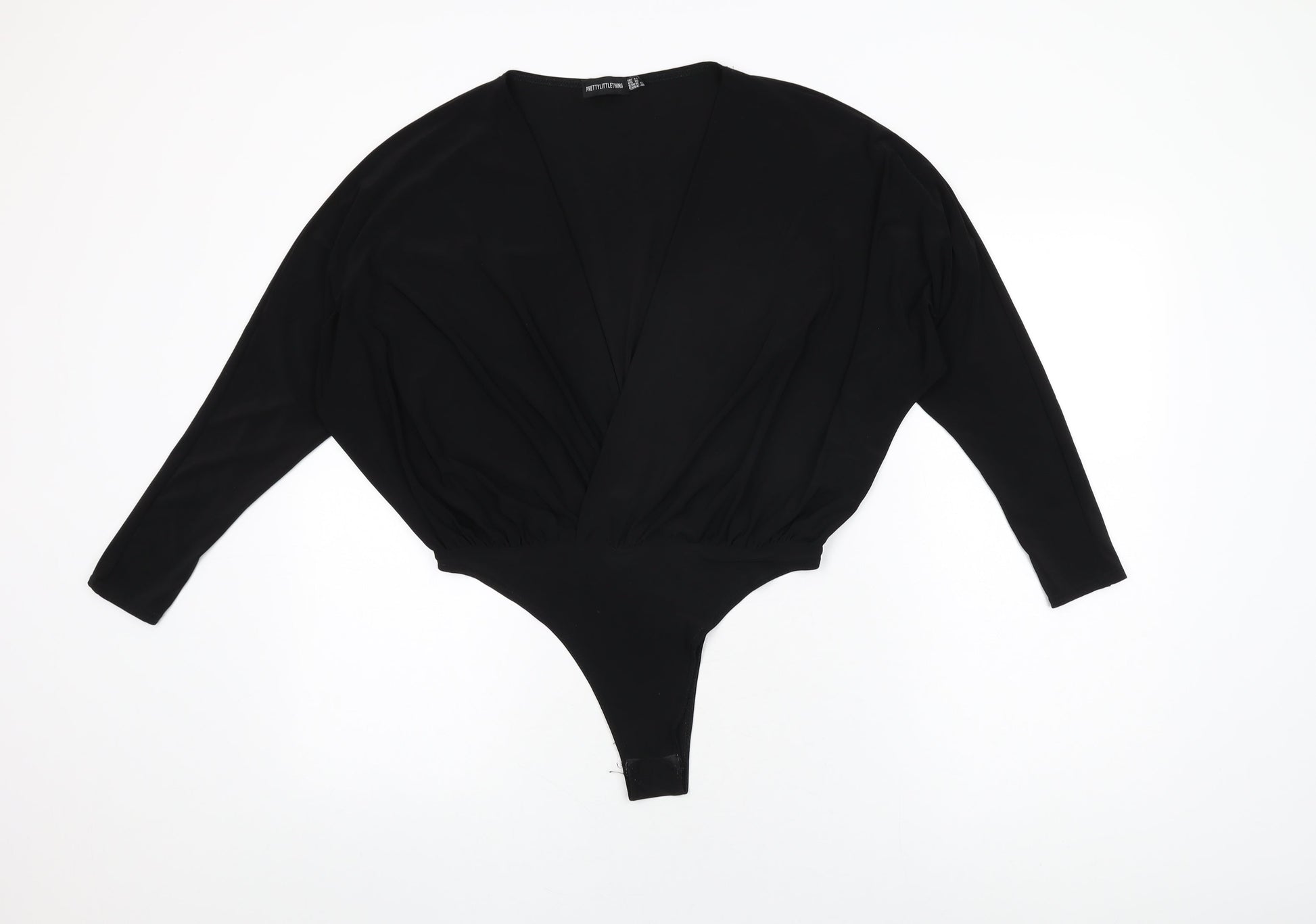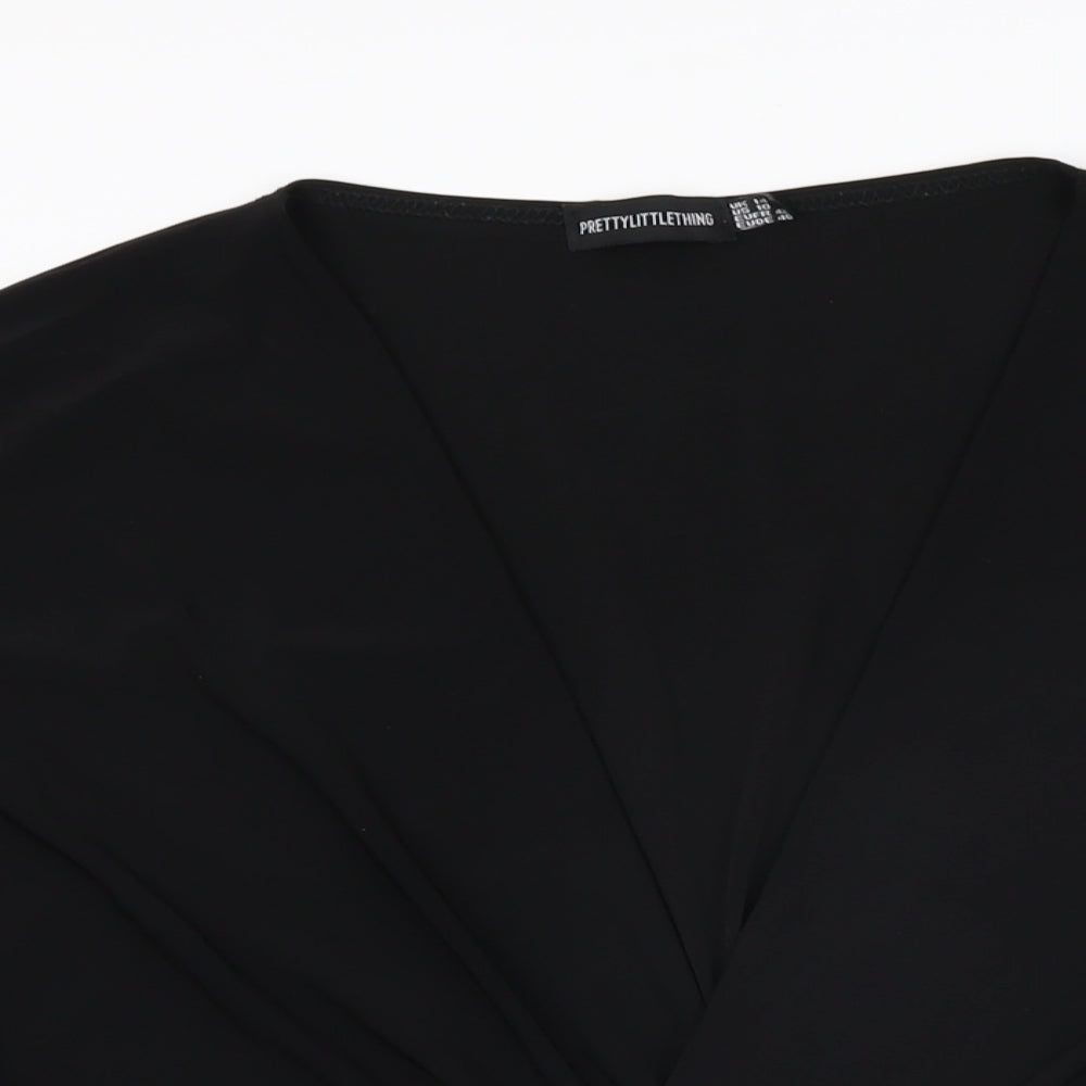 PRETTYLITTLETHING Womens Black Polyester Bodysuit One-Piece Size 14 Snap