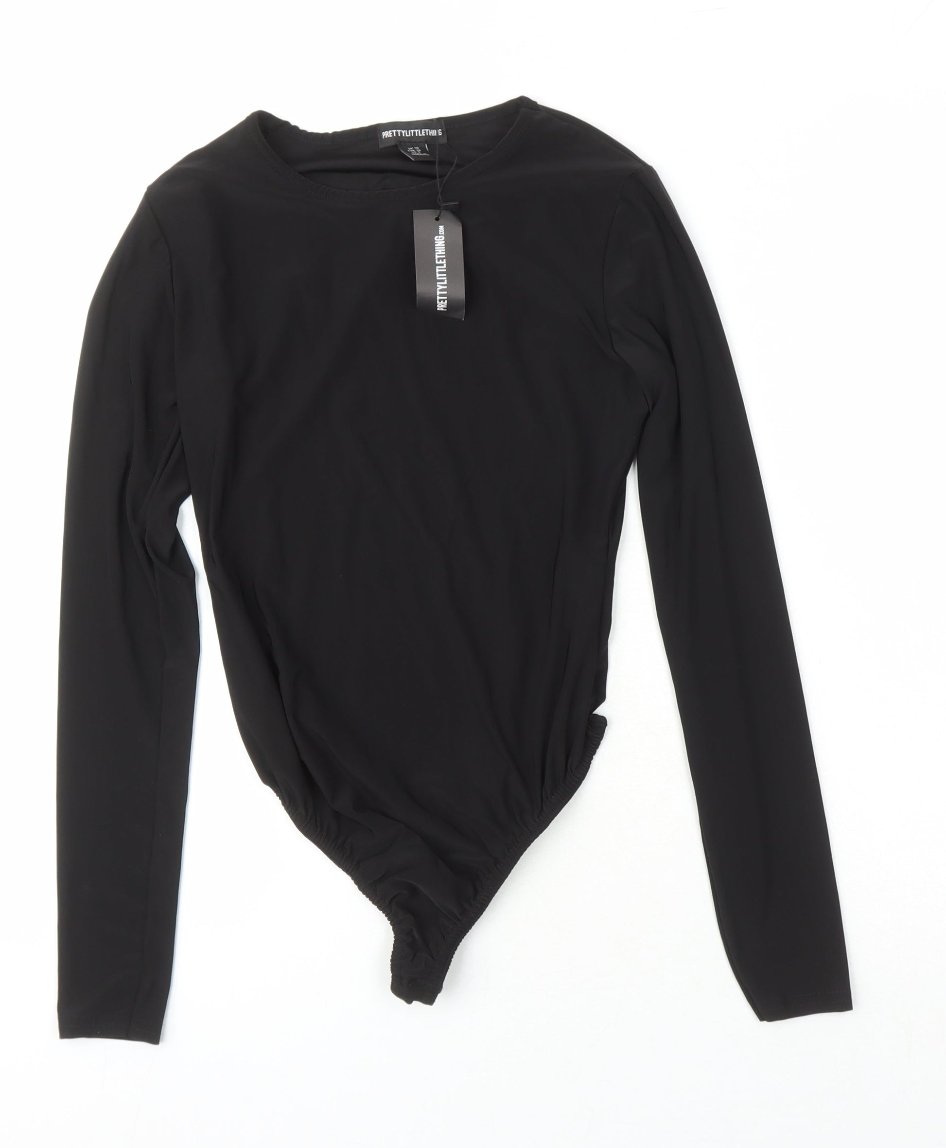 PRETTYLITTLETHING Womens Black Polyester Bodysuit One-Piece Size 10
