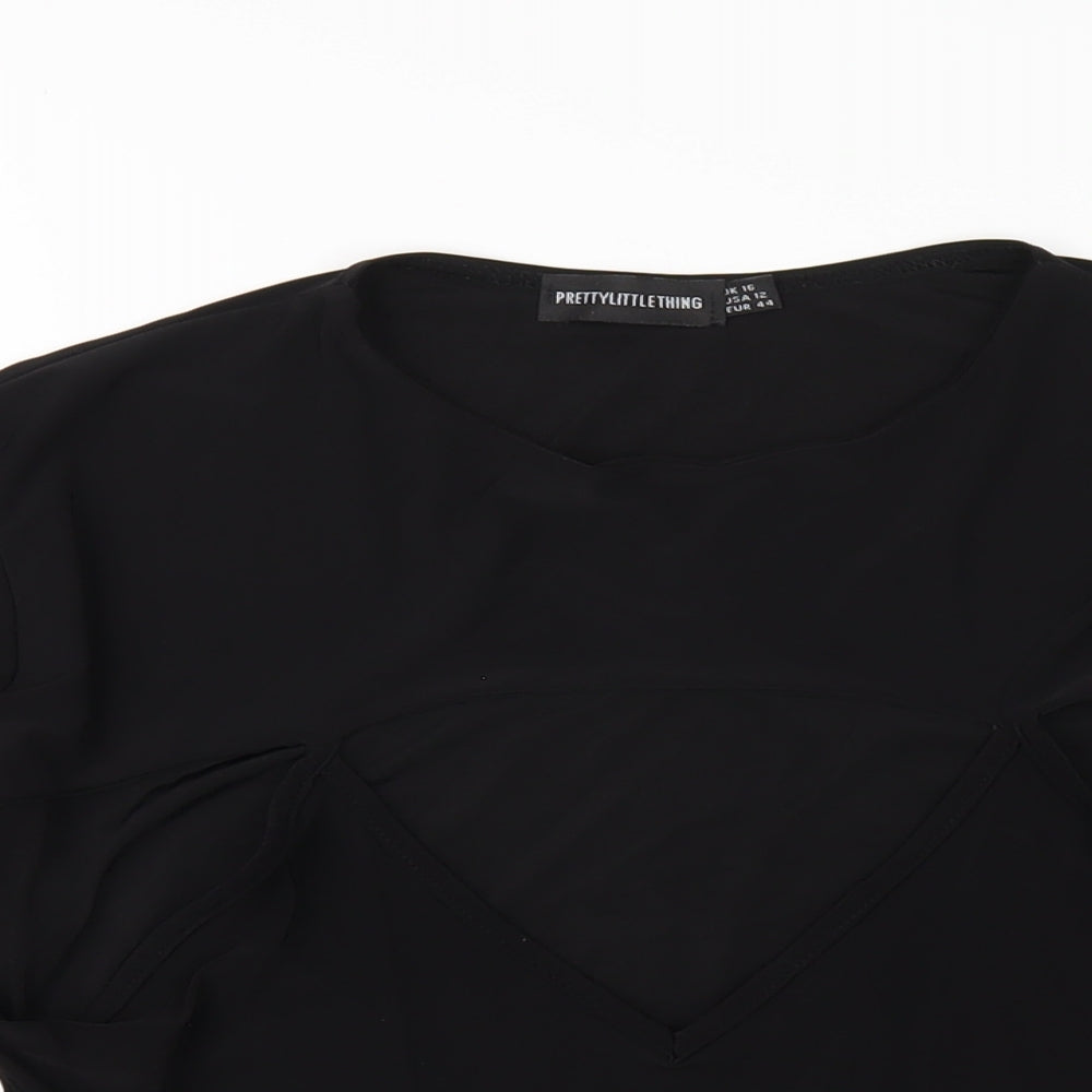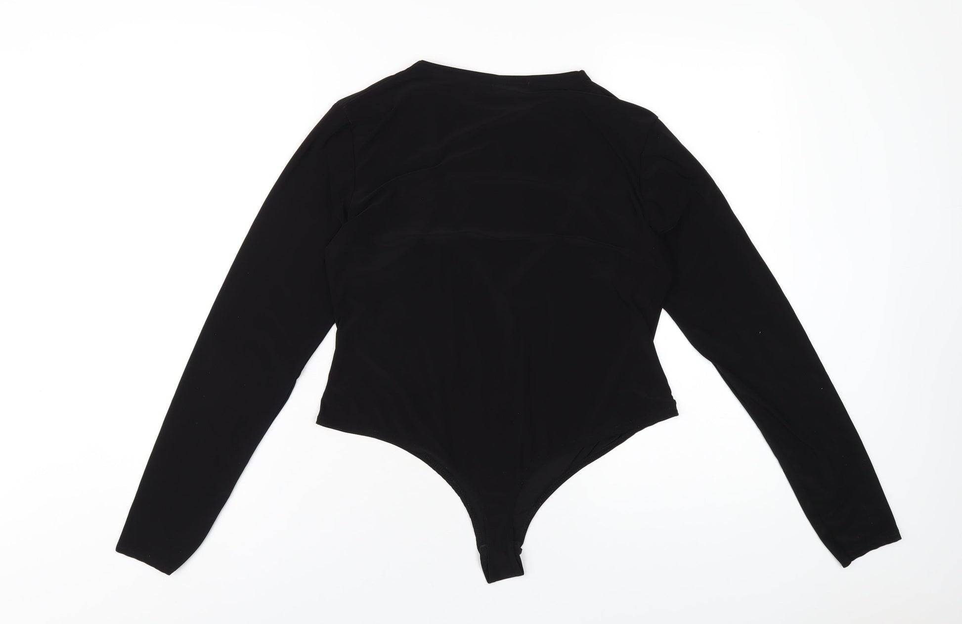 PRETTYLITTLETHING Womens Black Polyester Bodysuit One-Piece Size 16 Snap