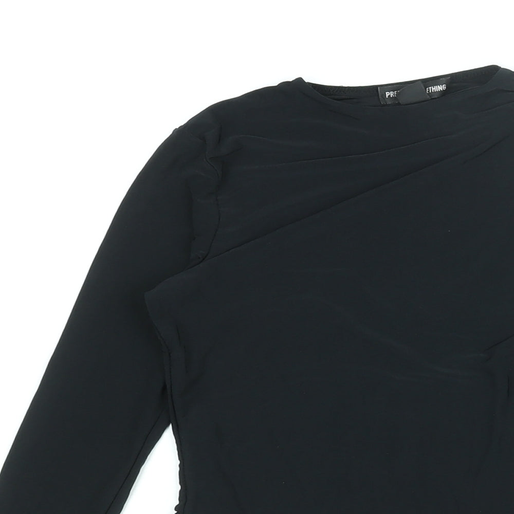 PRETTYLITTLETHING Womens Black Polyester Bodysuit One-Piece Size 6 Snap