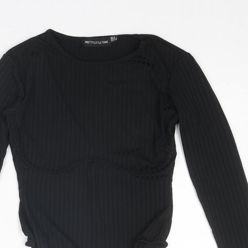 PRETTYLITTLETHING Womens Black Polyester Bodysuit One-Piece Size 6 Snap