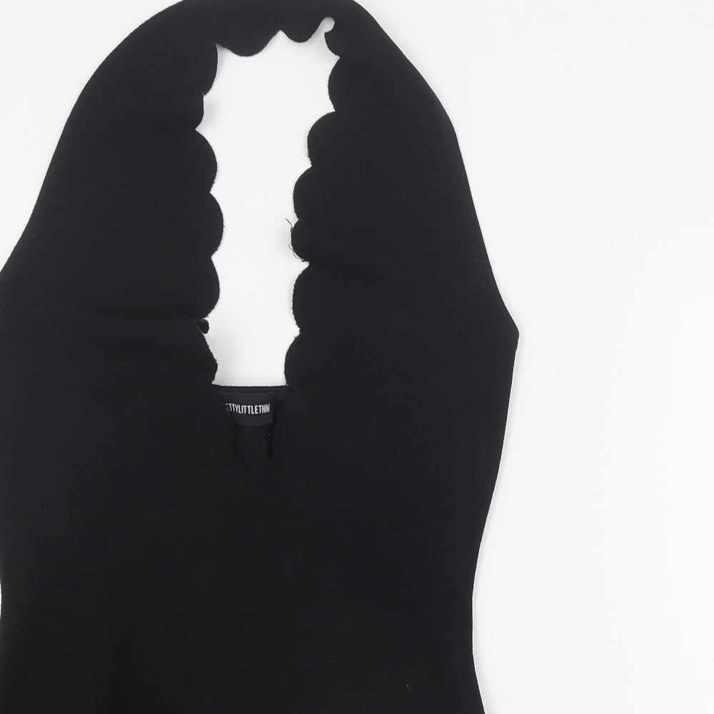 PRETTYLITTLETHING Womens Black Polyester Bodysuit One-Piece Size 8 L10 in Snap