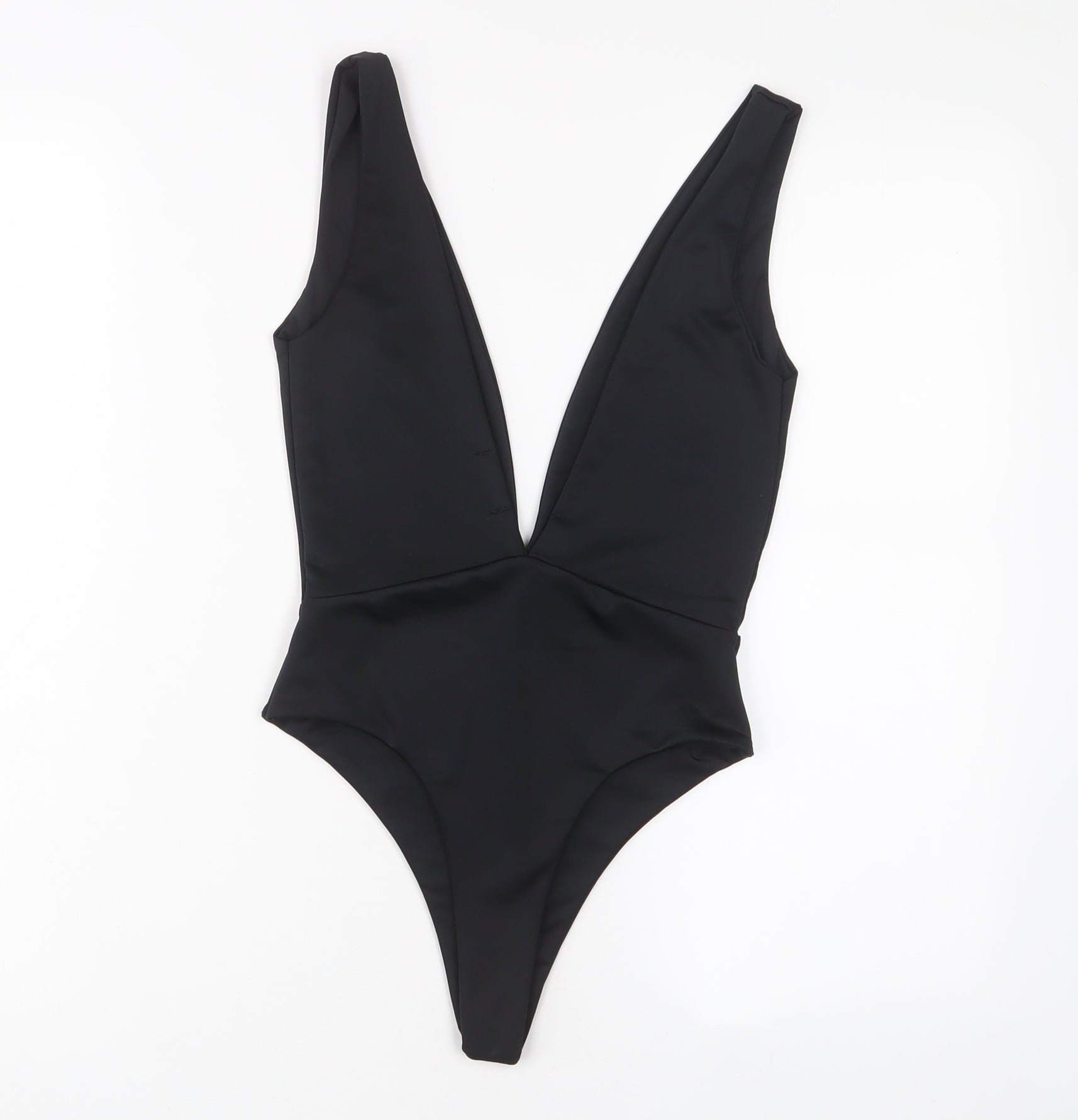 PRETTYLITTLETHING Womens Black Polyester Bodysuit One-Piece Size 8 Snap