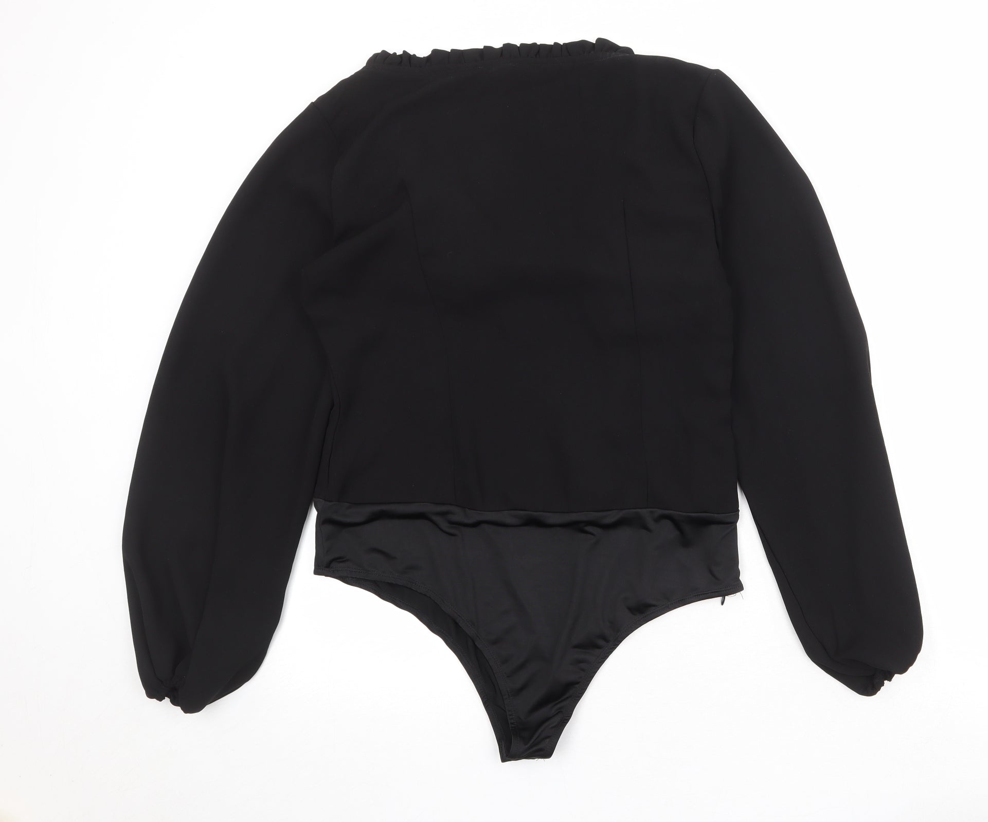 PRETTYLITTLETHING Womens Black Polyester Bodysuit One-Piece Size M Zip