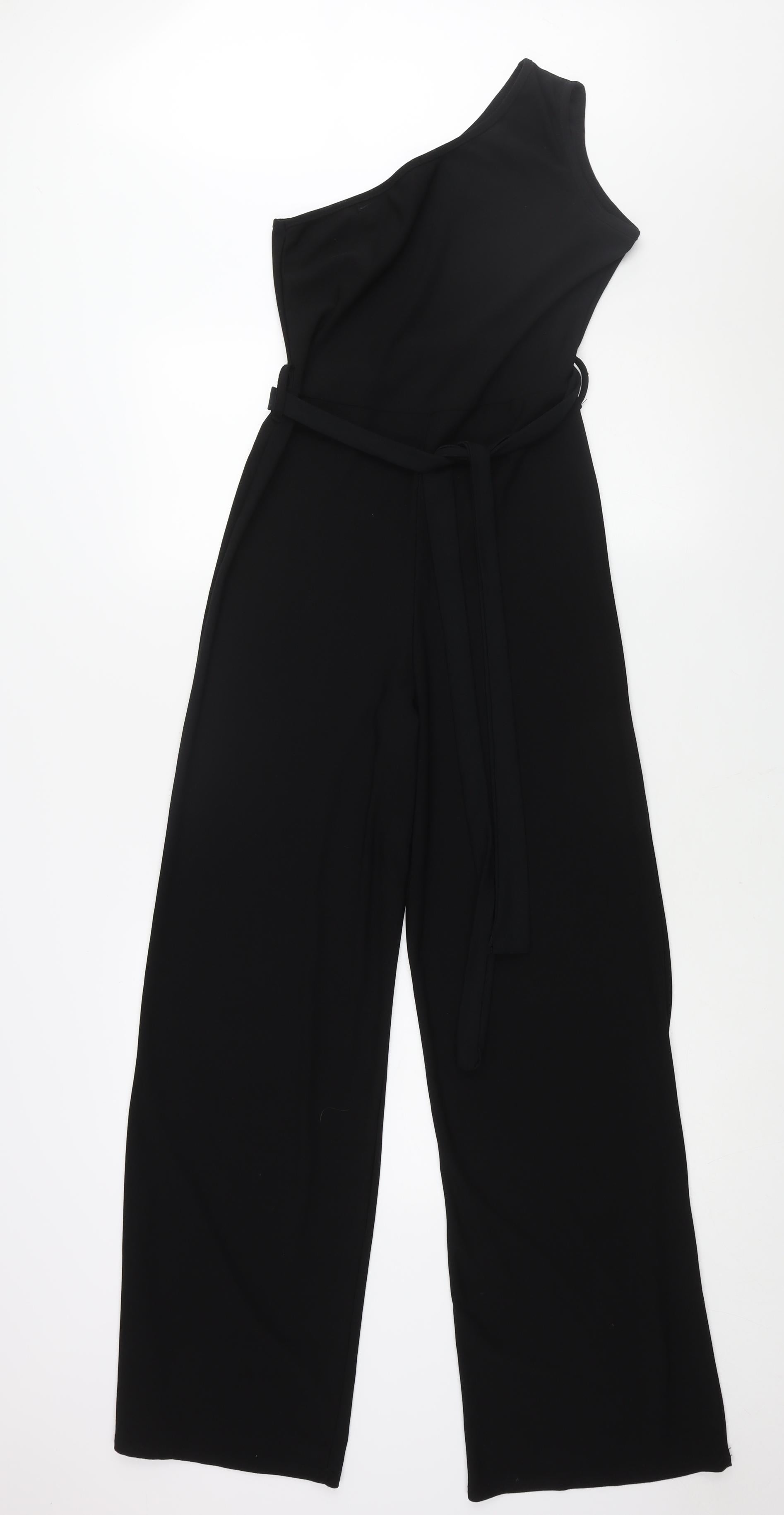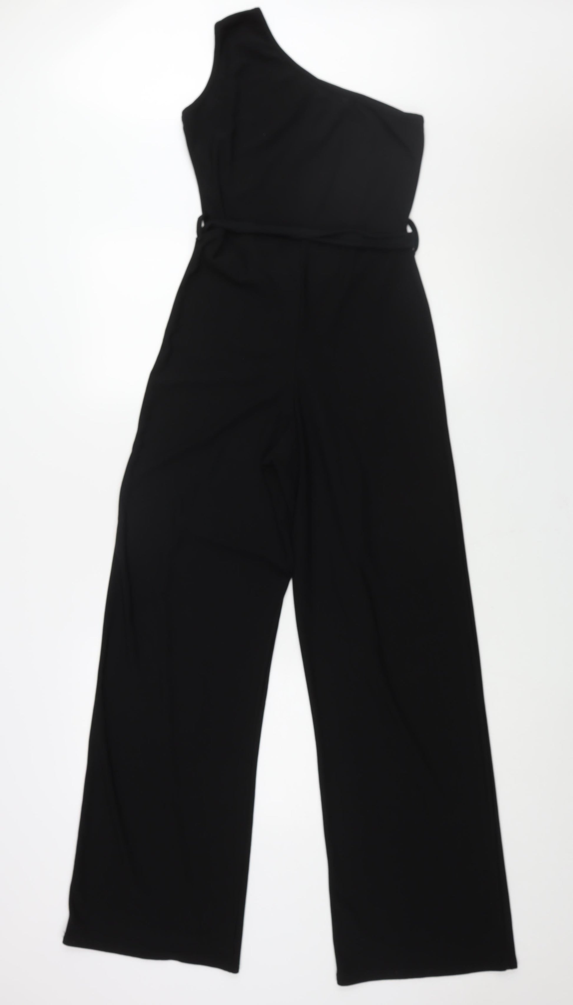 PRETTYLITTLETHING Womens Black Polyester Jumpsuit One-Piece Size 10 L32 in Pullover - Belted