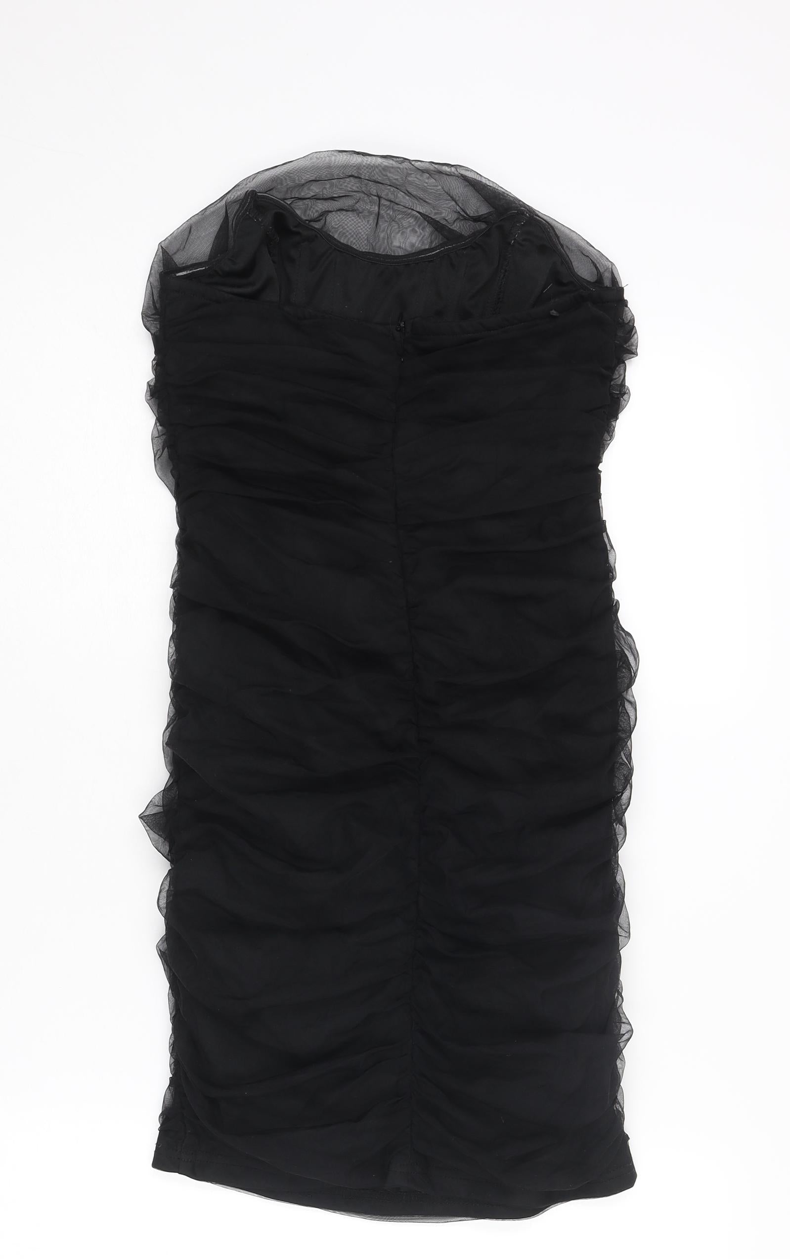 PRETTYLITTLETHING Womens Black Polyester Mini Size 10 Round Neck Zip