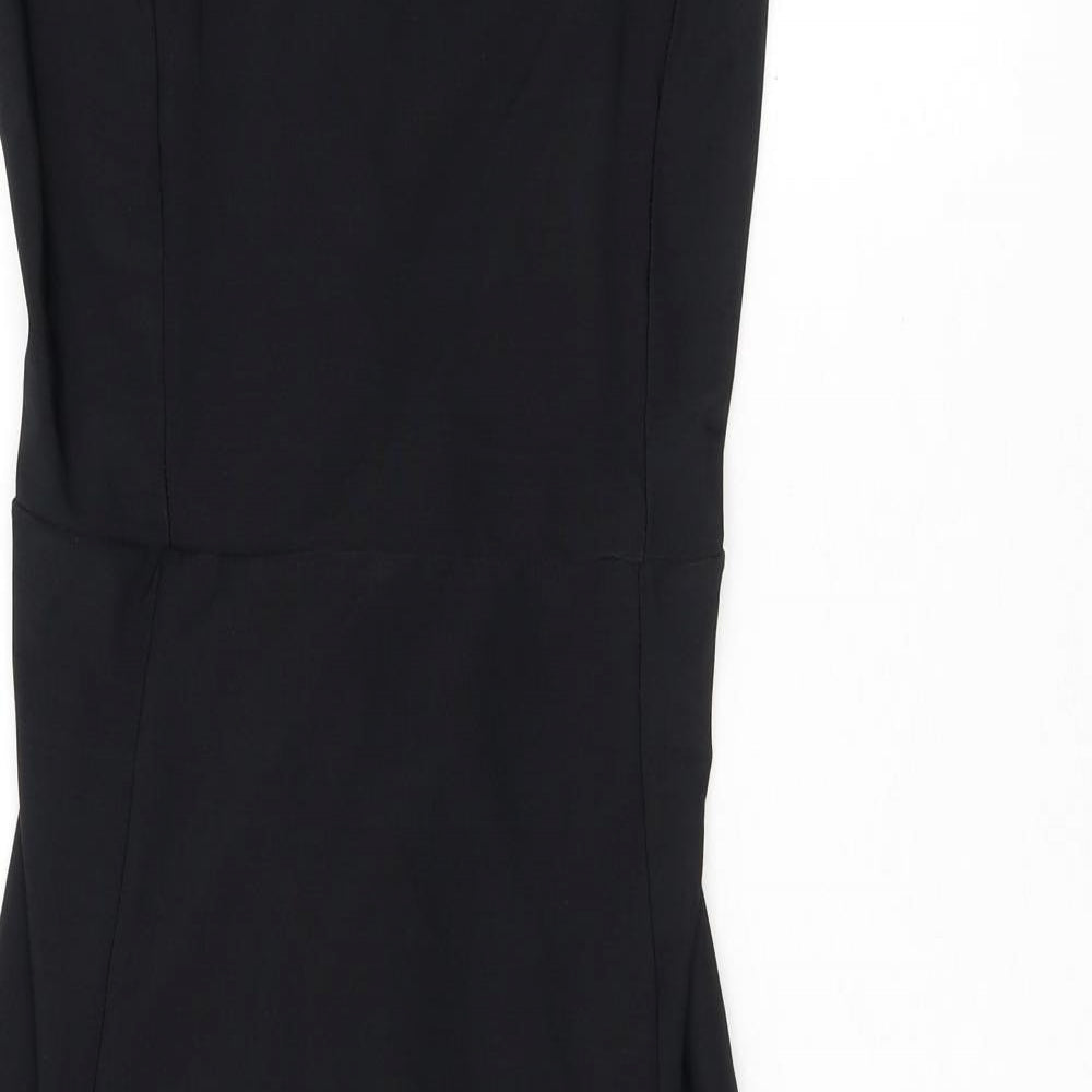 PRETTYLITTLETHING Womens Black Polyester Mini Size 12 Off the Shoulder Pullover - Frills