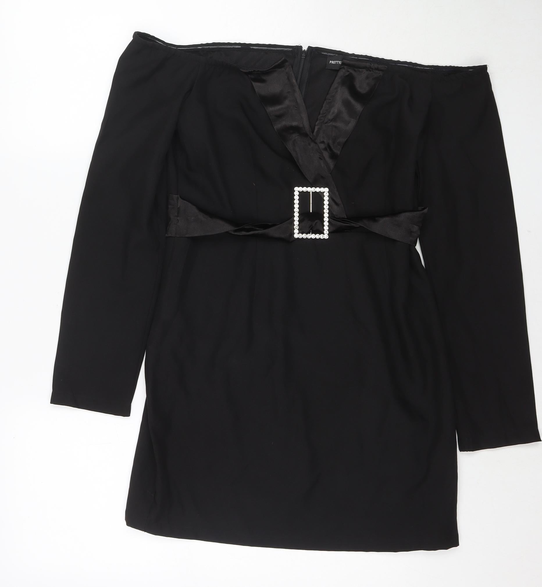 PRETTYLITTLETHING Womens Black Polyester Mini Size 12 Off the Shoulder Zip