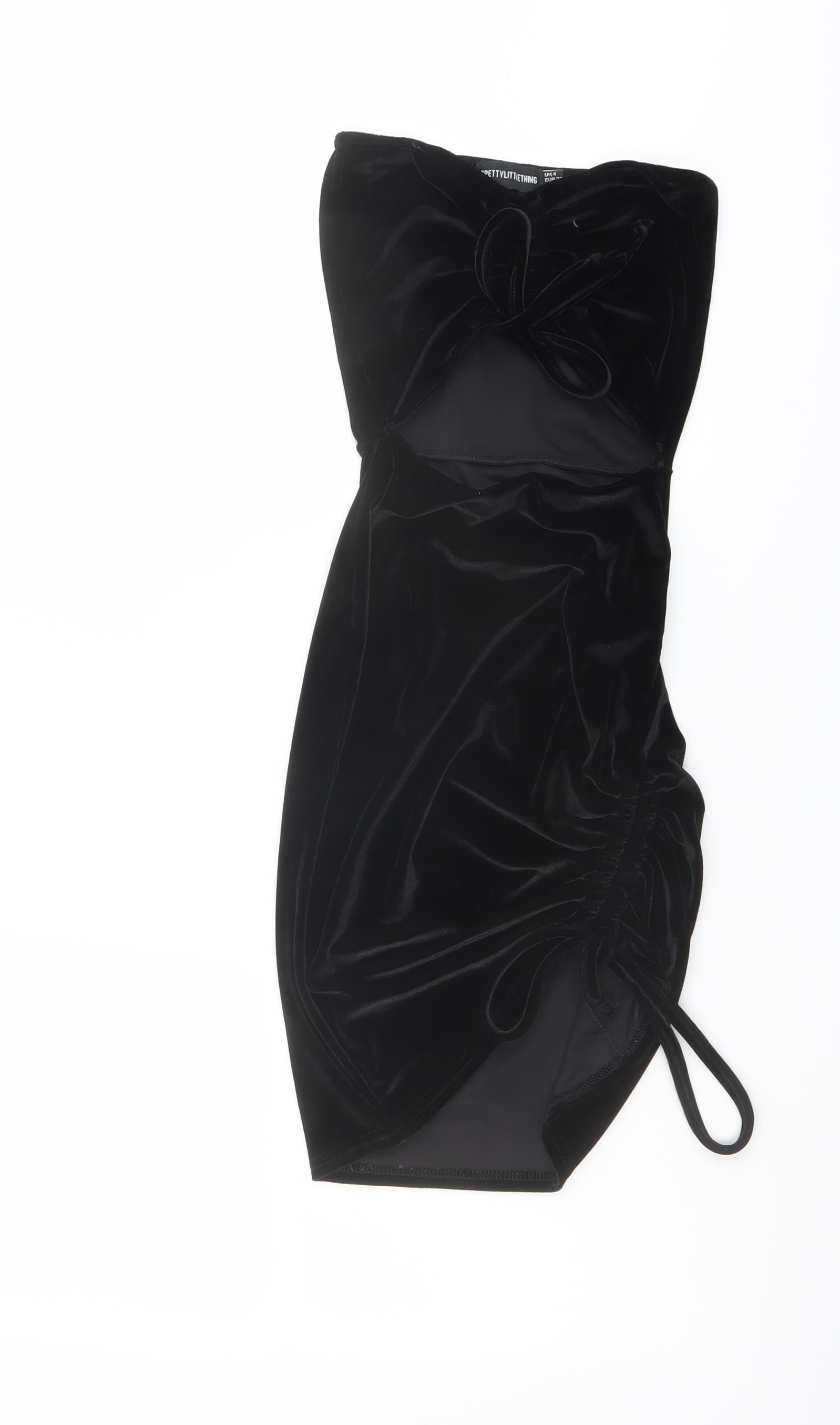 PRETTYLITTLETHING Womens Black Polyester Mini Size 4 Off the Shoulder Pullover