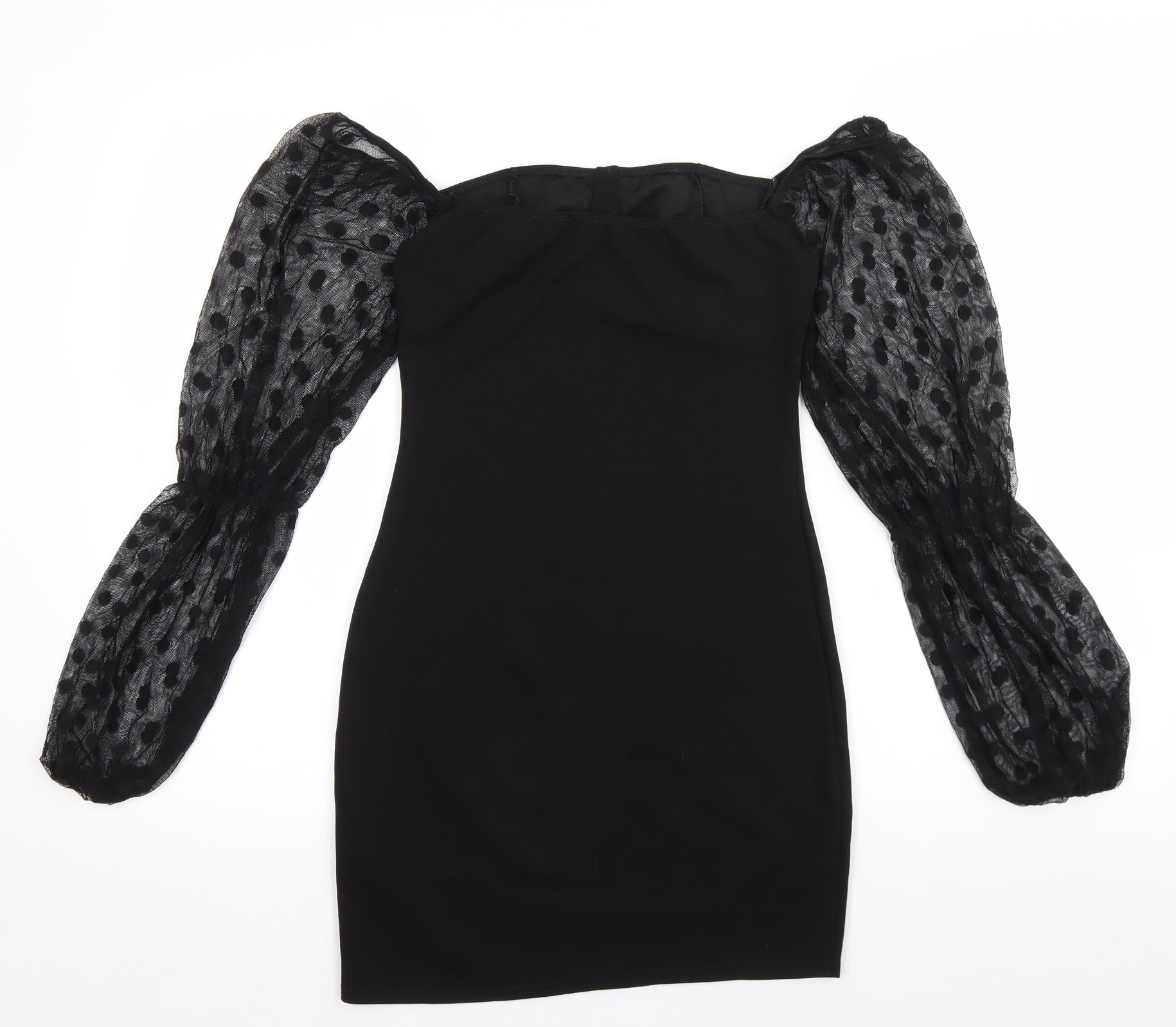 PRETTYLITTLETHING Womens Black Polyester Mini Size 6 Off the Shoulder Pullover