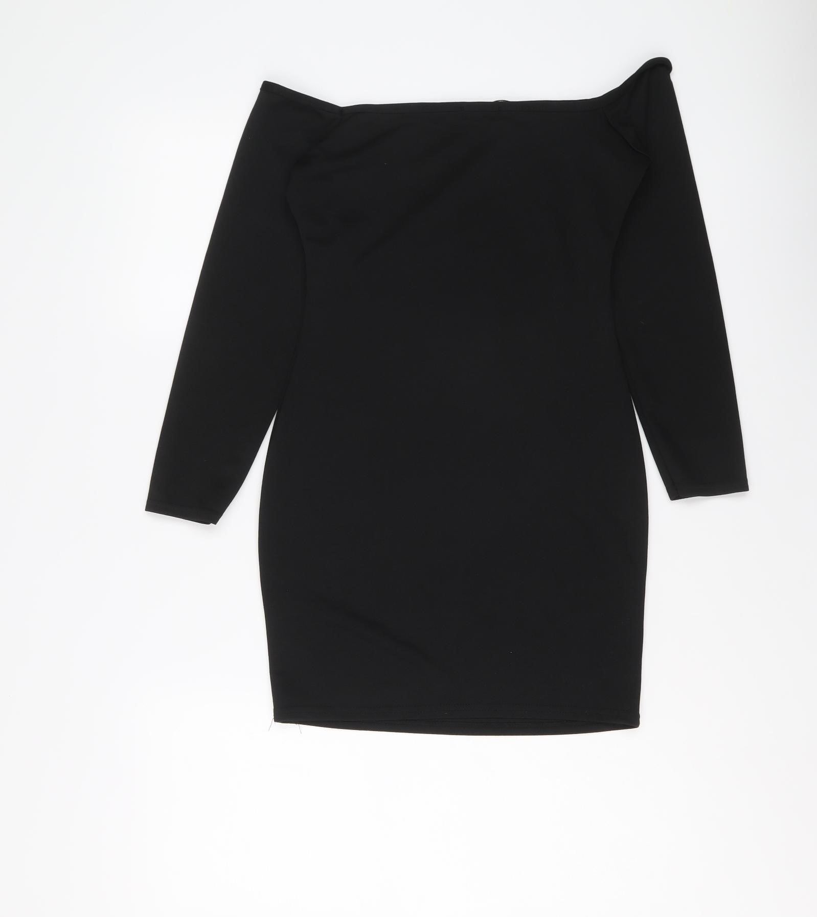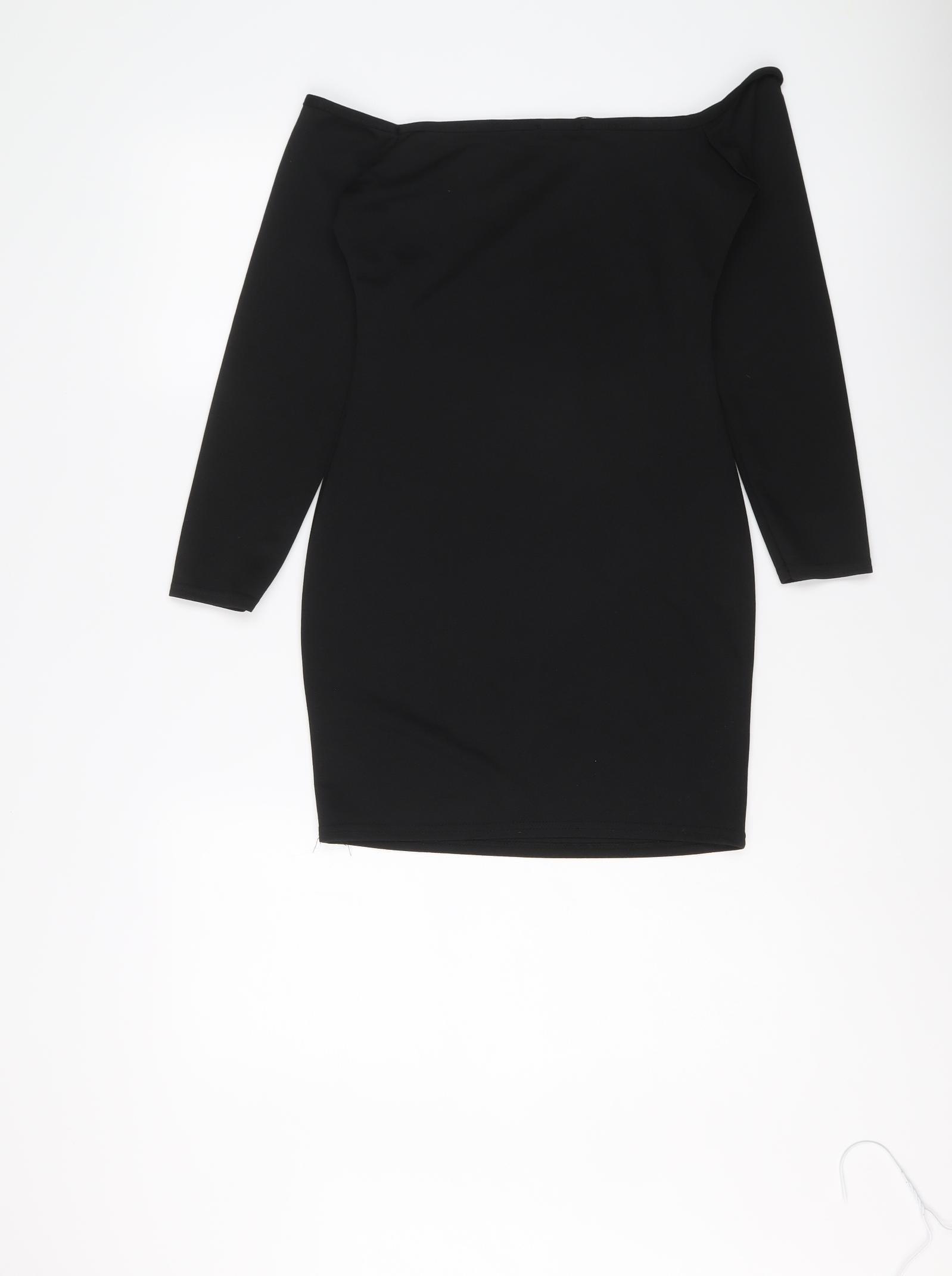 PRETTYLITTLETHING Womens Black Polyester Mini Size 6 Off the Shoulder Pullover