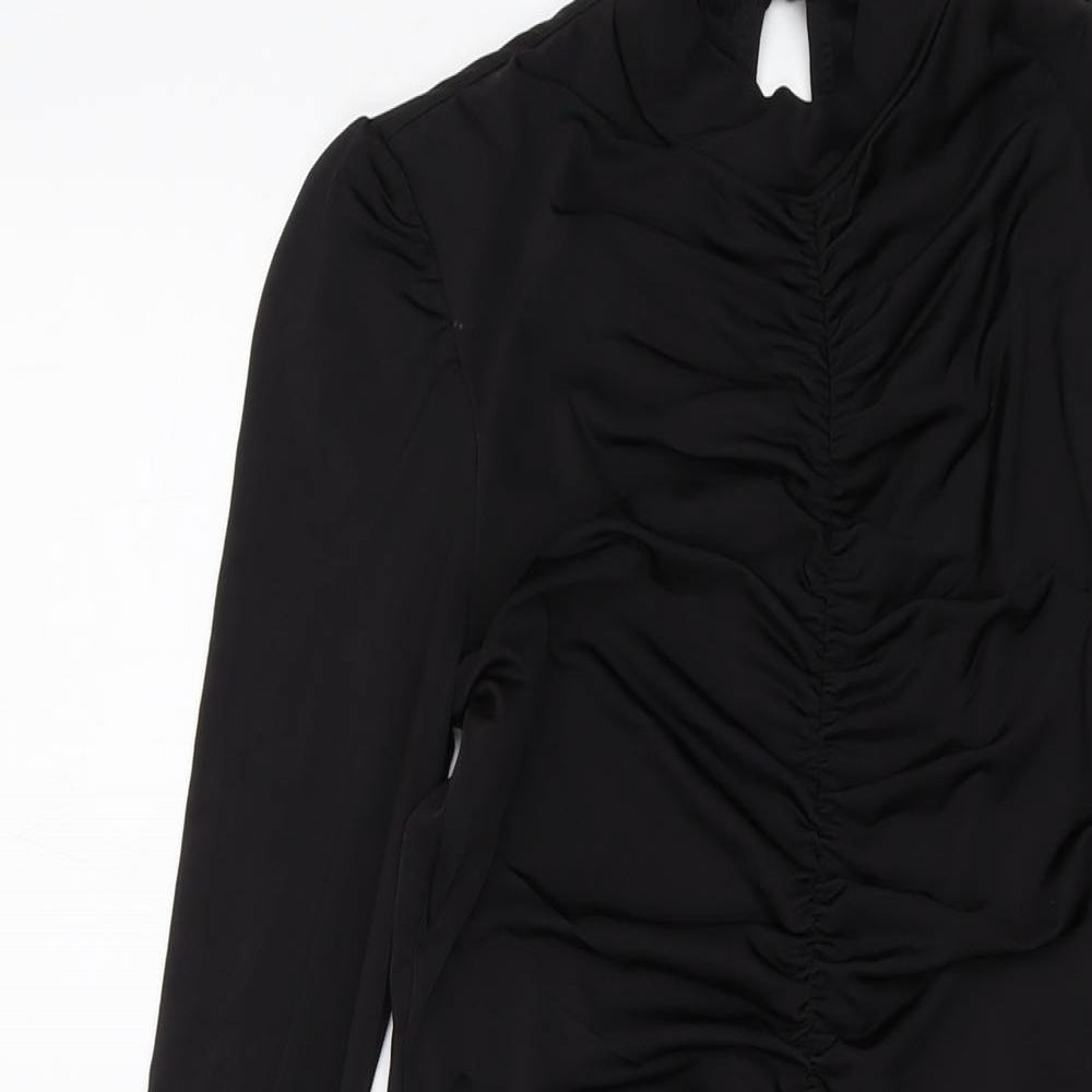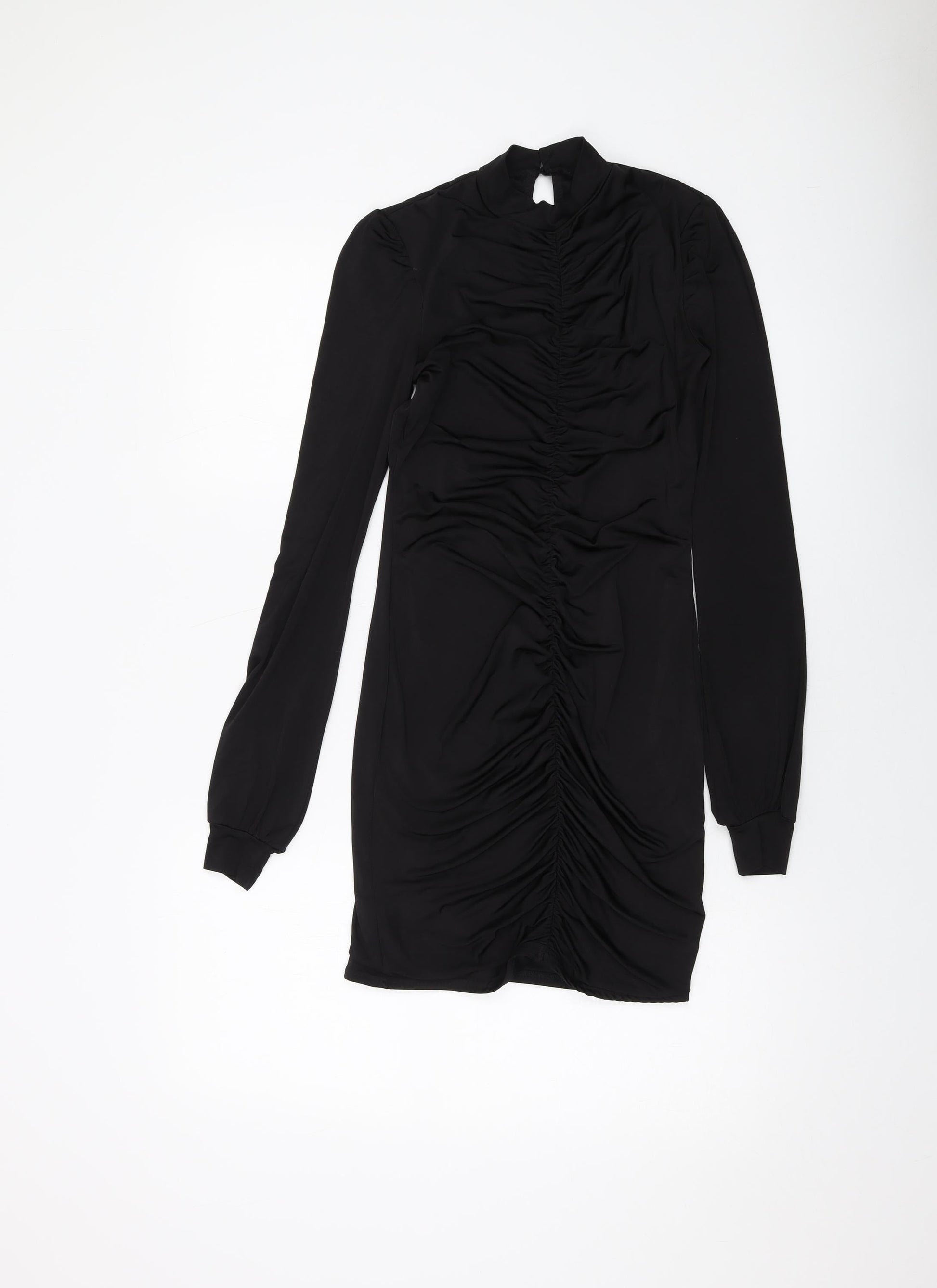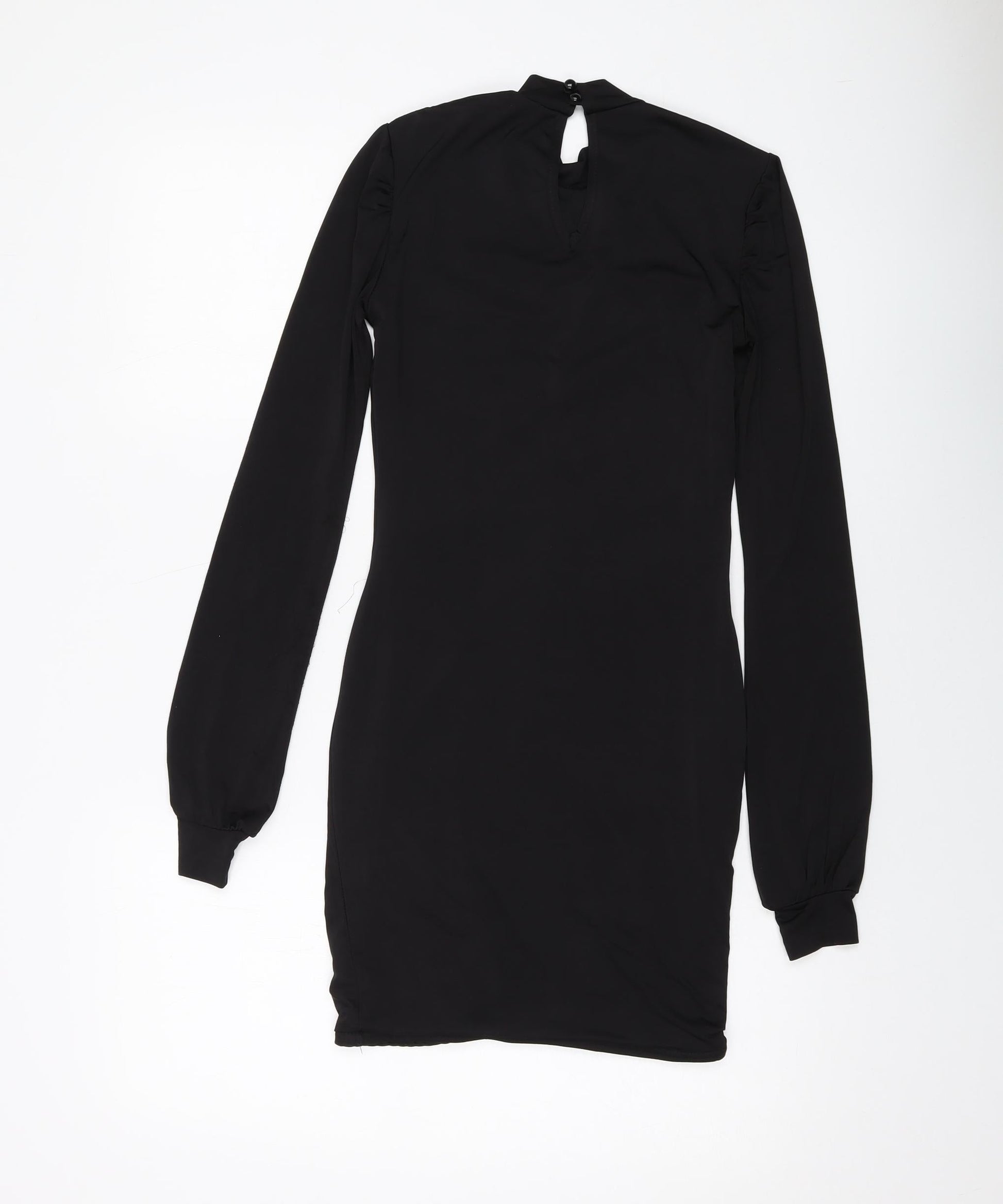 PRETTYLITTLETHING Womens Black Polyester Mini Size 8 Mock Neck Button