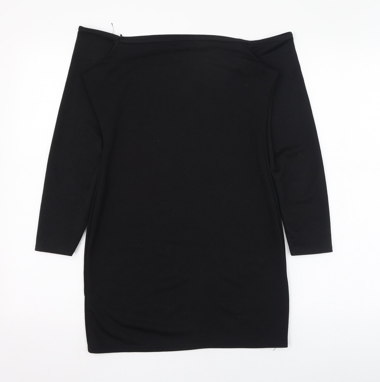 PRETTYLITTLETHING Womens Black Polyester Pencil Dress Size 8 Square Neck Pullover