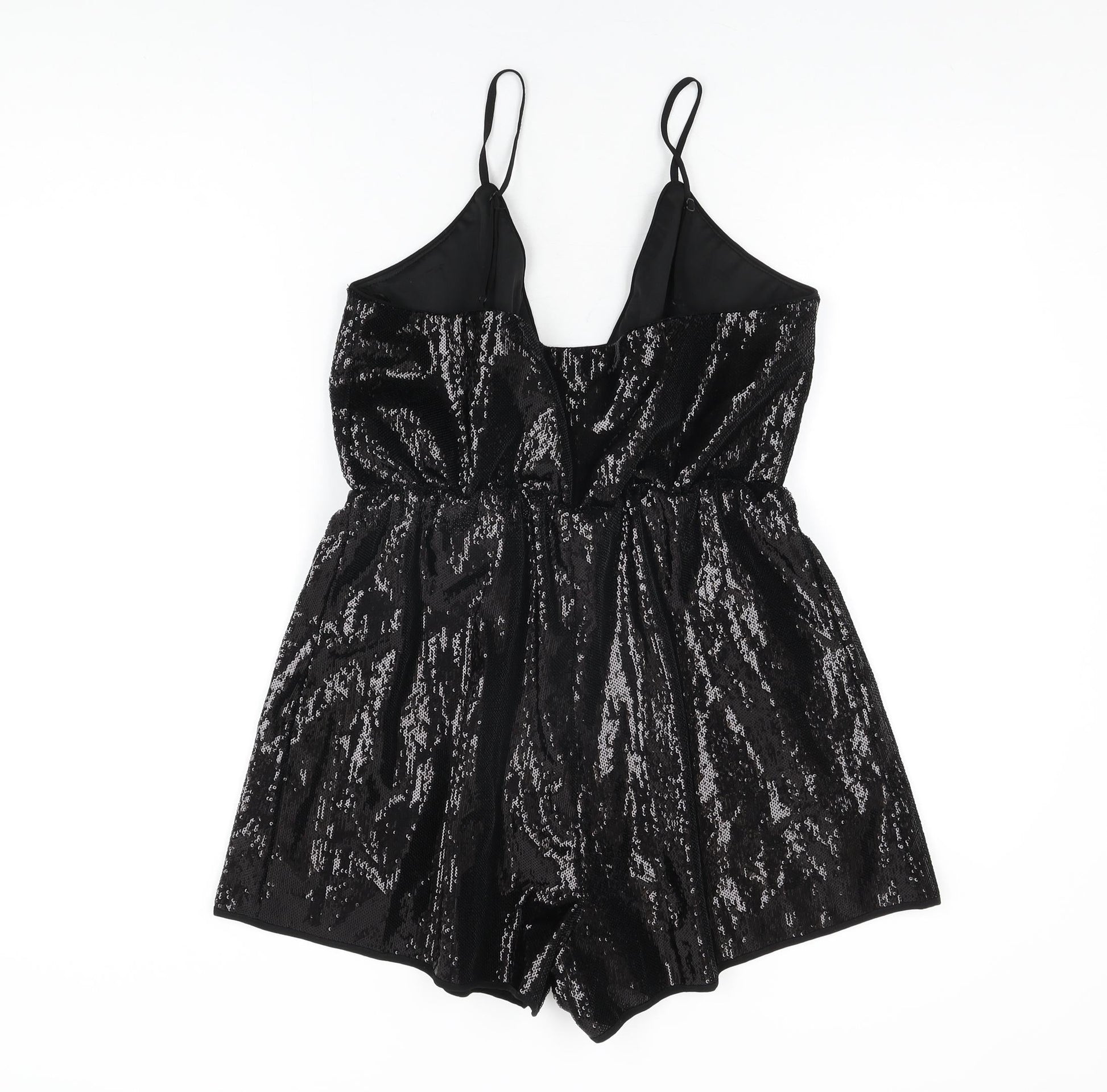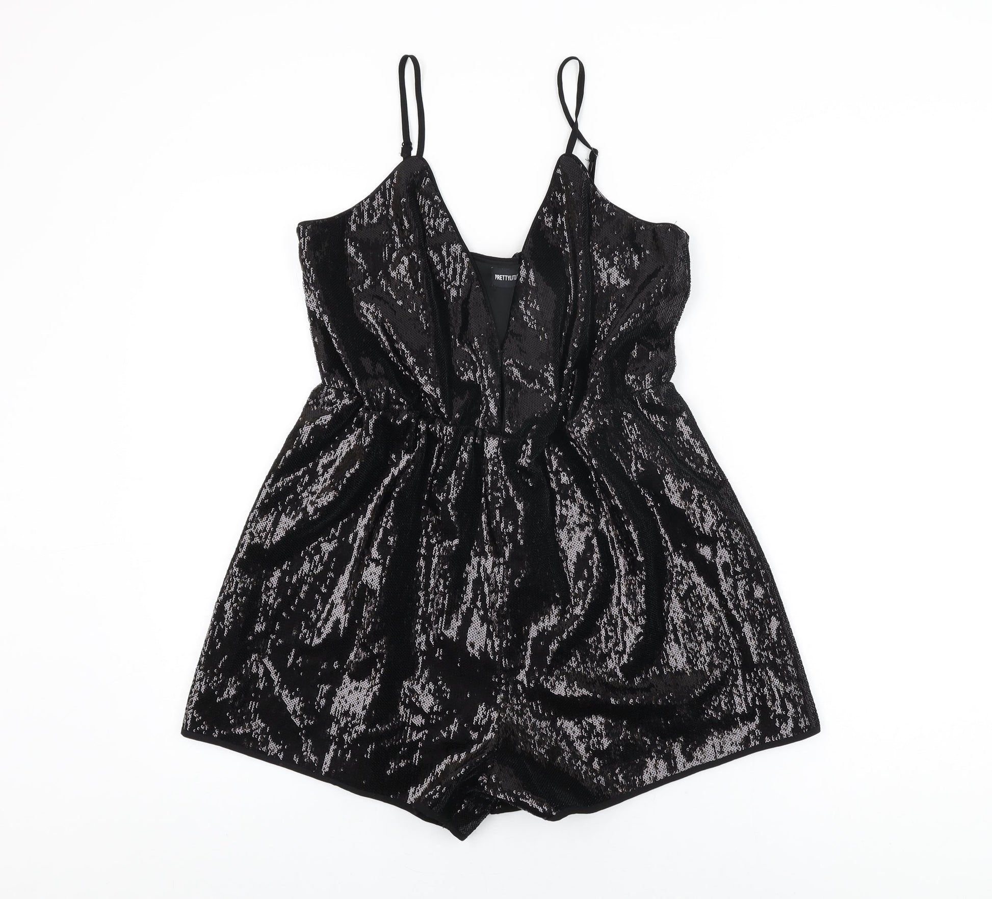 PRETTYLITTLETHING Womens Black Polyester Playsuit One-Piece Size 14 L3 in Pullover