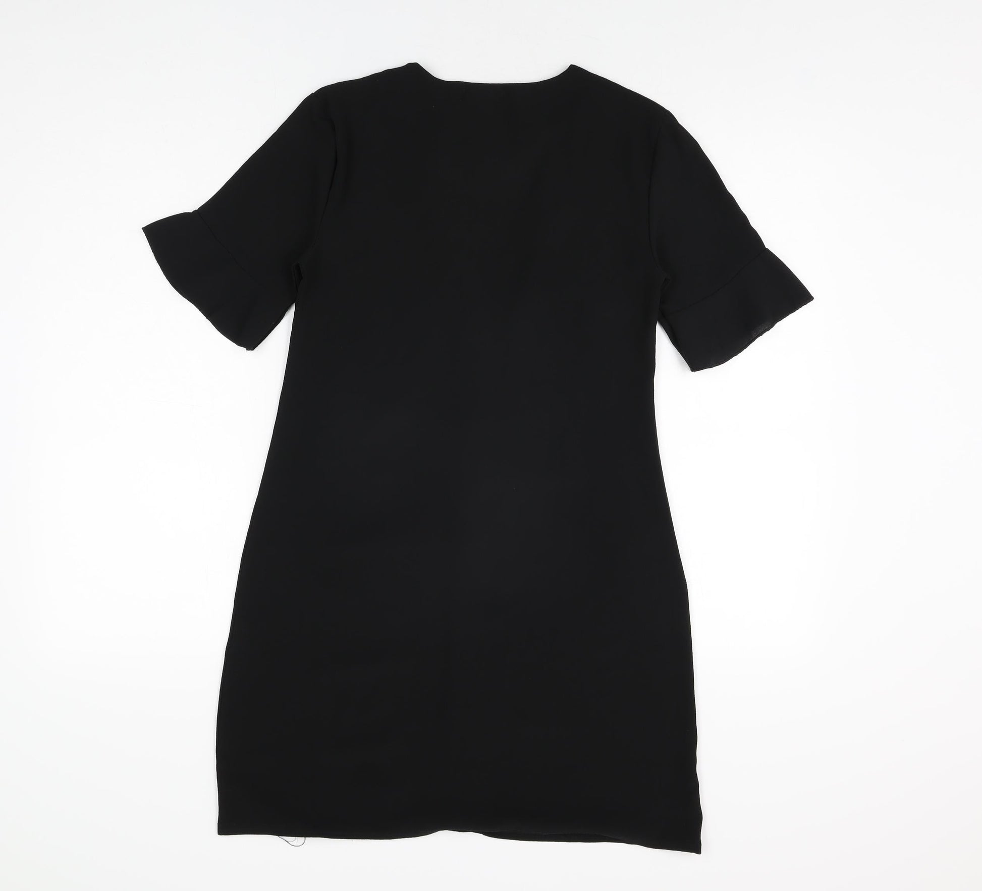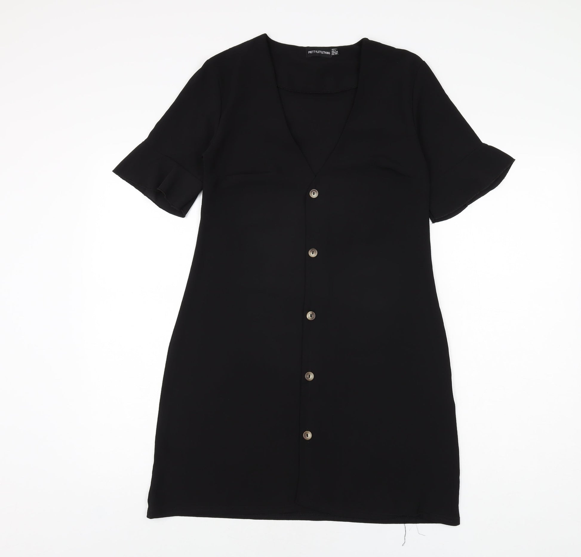 PRETTYLITTLETHING Womens Black Polyester Shift Size 4 V-Neck Button