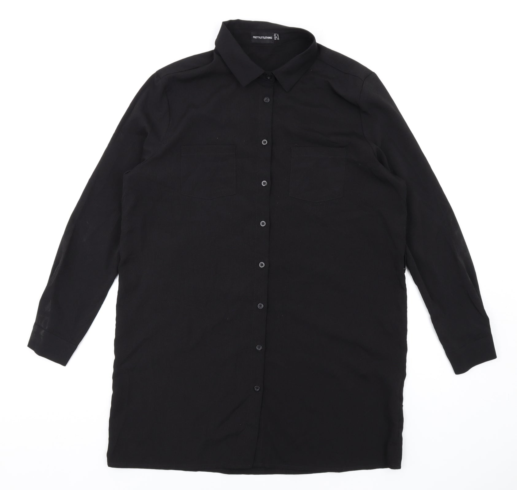 PRETTYLITTLETHING Womens Black Polyester Shirt Dress Size 6 Collared Button