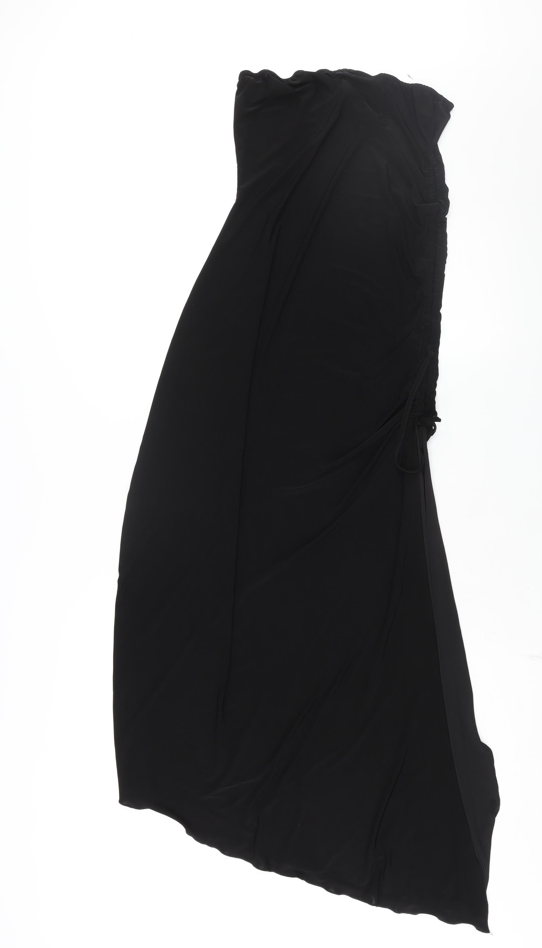 PRETTYLITTLETHING Womens Black Polyester Slip Dress Size 12 Square Neck Pullover - Drawstring Detail