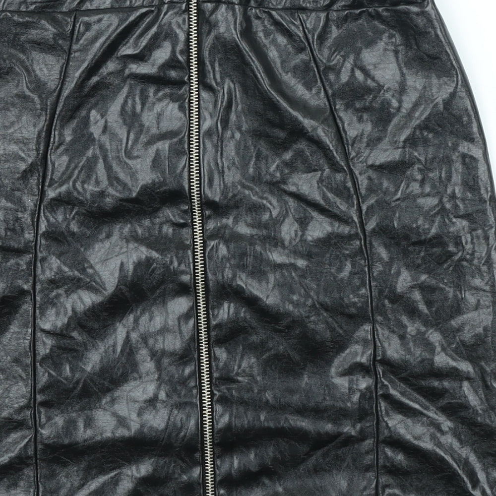 PRETTYLITTLETHING Womens Black Polyester Straight & Pencil Skirt Size 10 Zip
