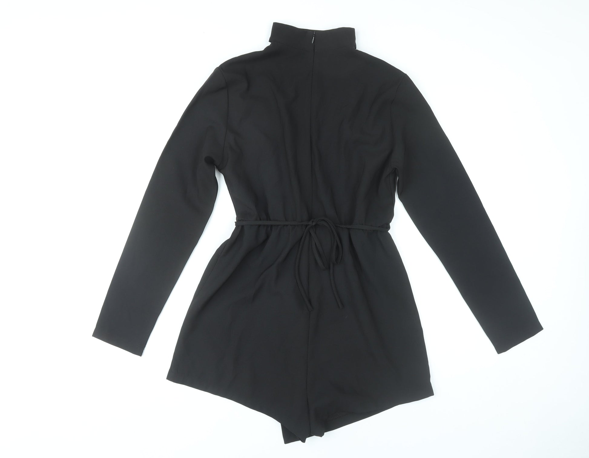 PrettyLittleThing Women's Black Size 10 Long Sleeve V-Neck Playsuit