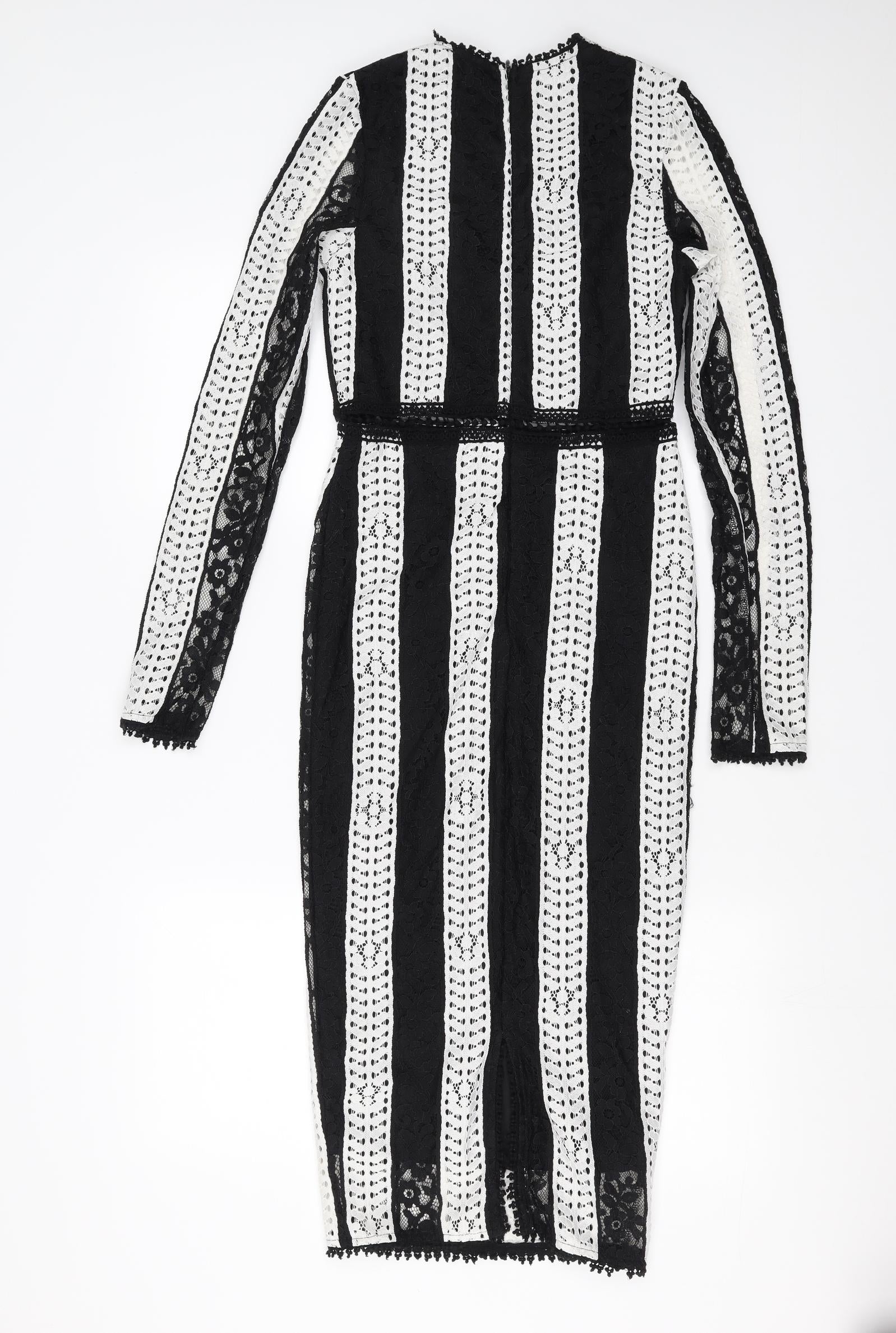 PRETTYLITTLETHING Womens Black Striped Pencil Dress Size 4