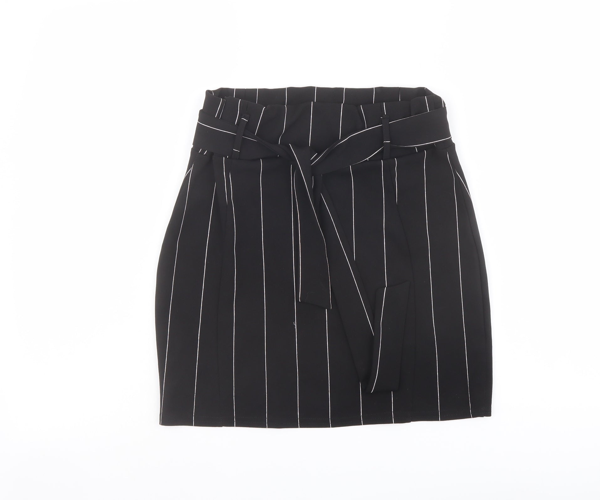 PRETTYLITTLETHING Womens Black Striped Polyester Bandage Skirt Size 14