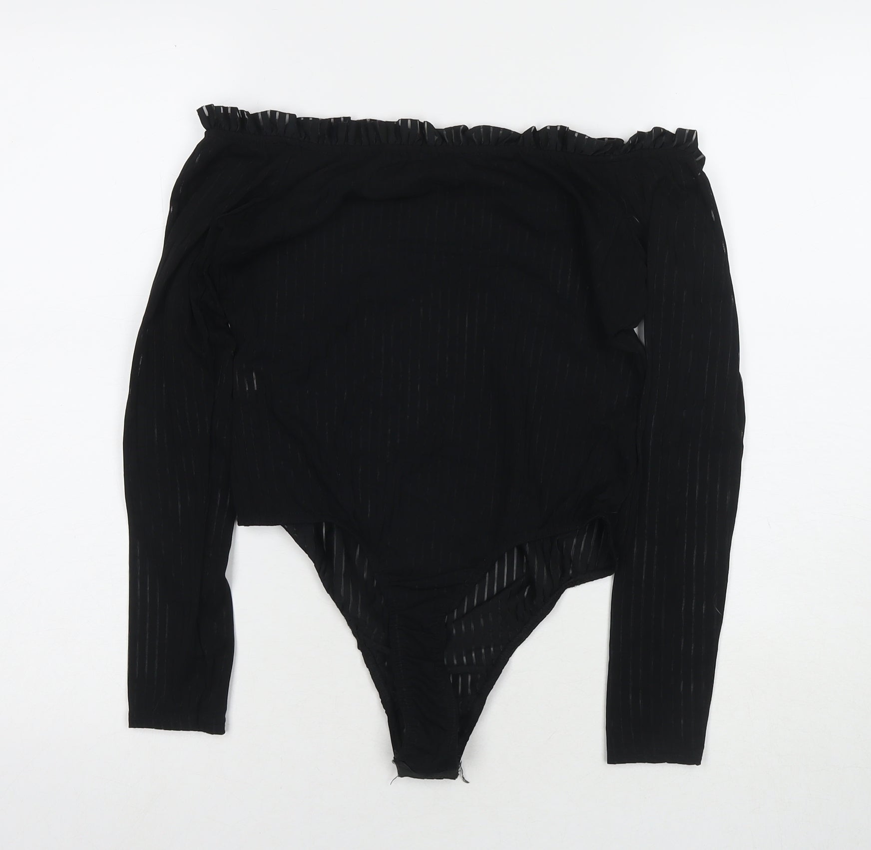 PRETTYLITTLETHING Womens Black Striped Polyester Bodysuit One-Piece Size 12 Snap